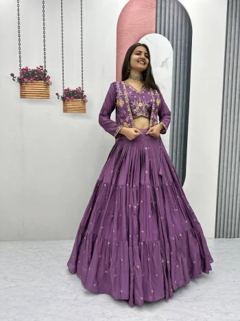 FANCY JACQUARD SILK WEAVING WITH CONTRAST BORDER WORK LEHENGA CHOLI WITH KOTI LAVENDER