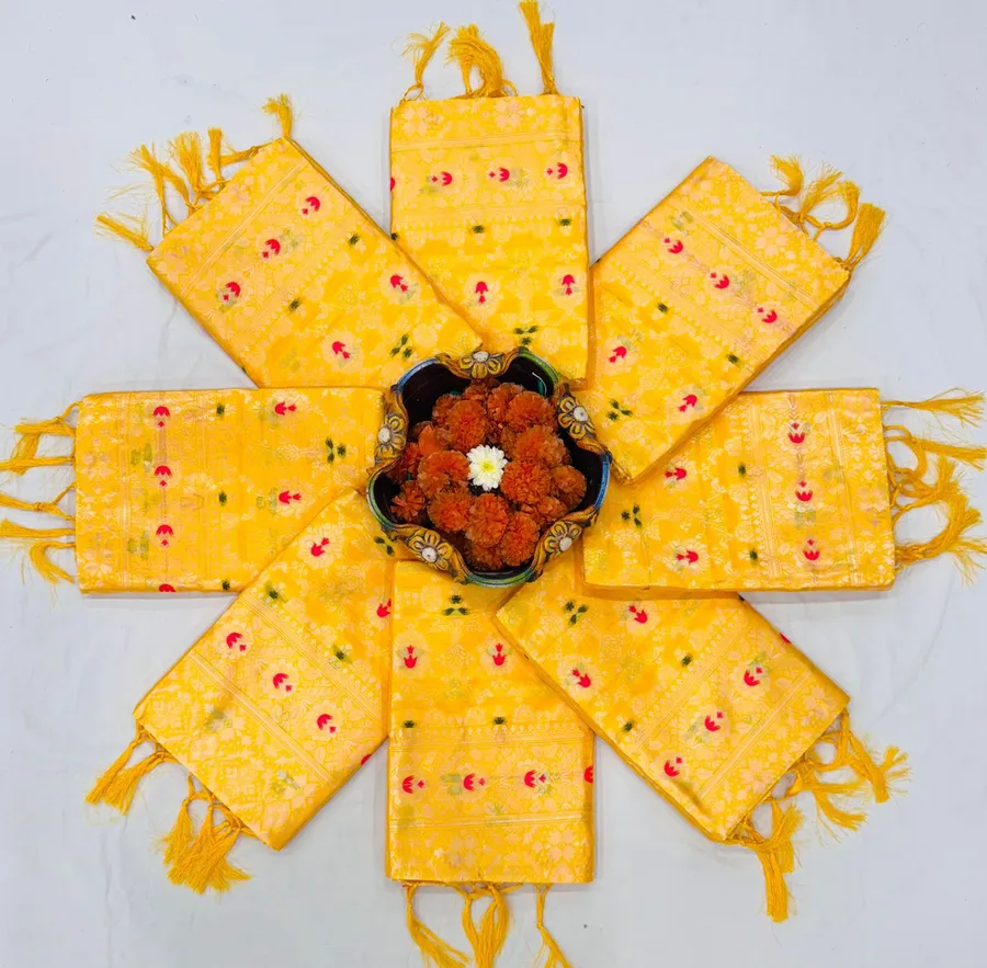 FANCY LICHI SILK JACQUARD WORK SAREE WITH UNSTITCHED BLOUSE YELLOW
