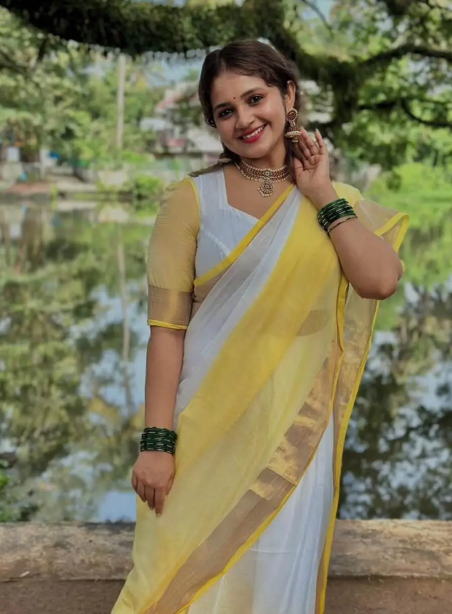 FANCY LINEN GOLDEN BORDER WORK SAREE WITH UNSTITCHED BLOUSE YELLOW