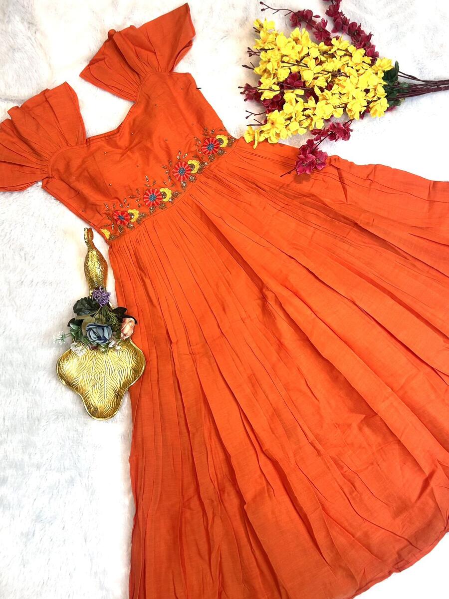 FANCY MUL MUL COTTON HANDWORK ONE PIECE ORANGE