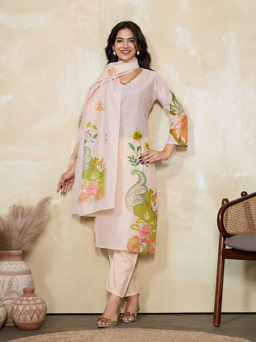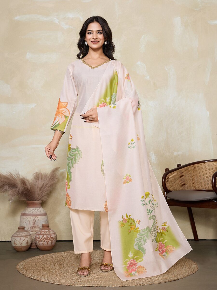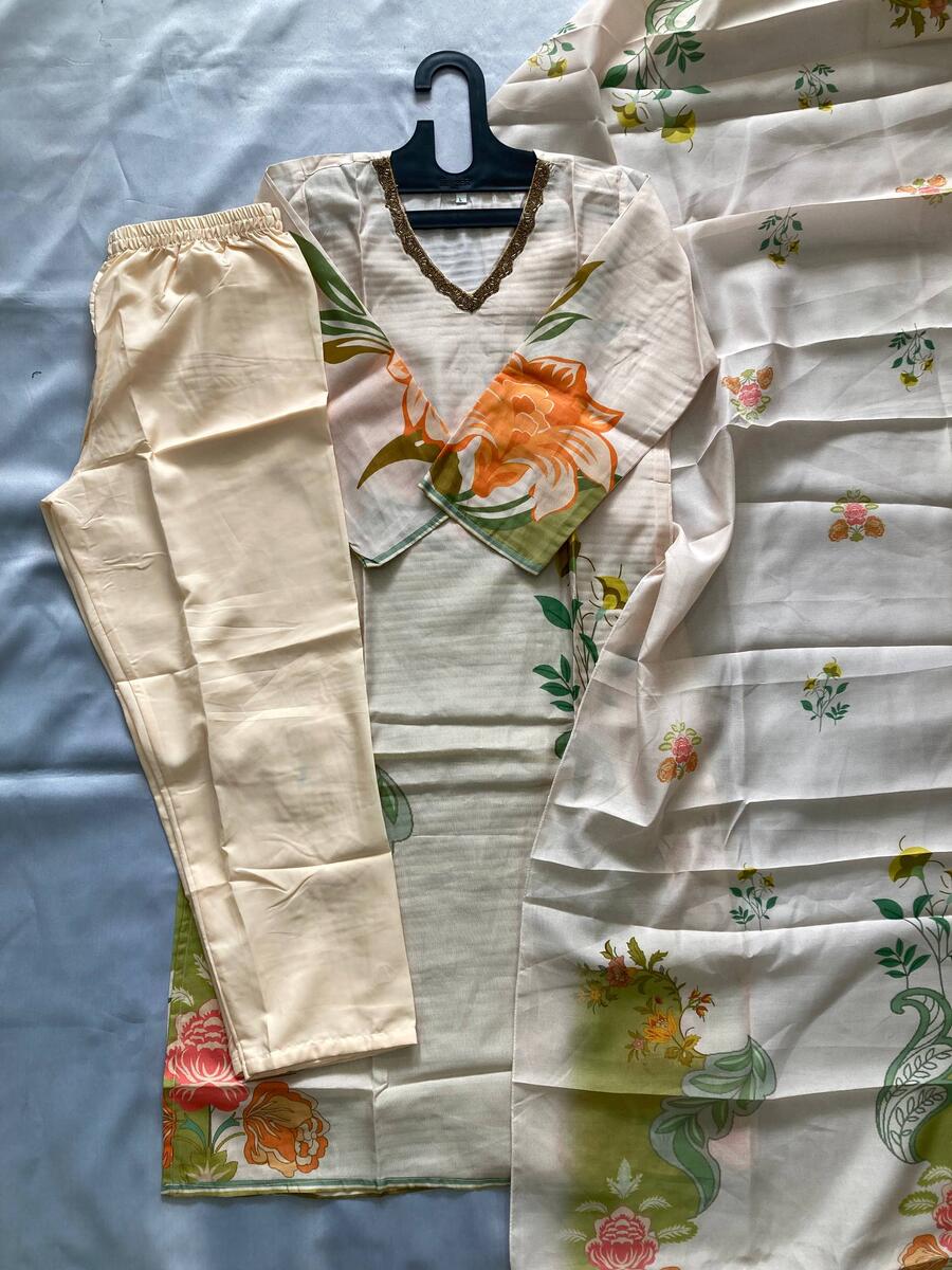 FANCY MUSLIN SILK DIGITAL PRINT WORK TOP BOTTOM WITH DUPATTA CREAM