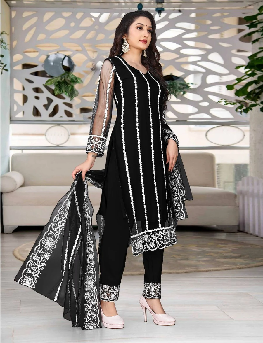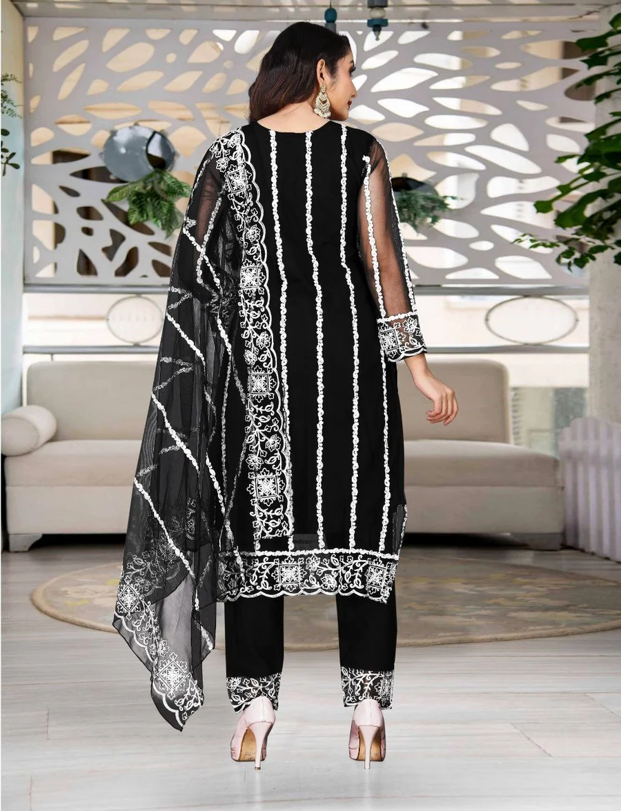 FANCY NET EMBROIDERY WORK TOP BOTTOM WITH DUPATTA BLACK