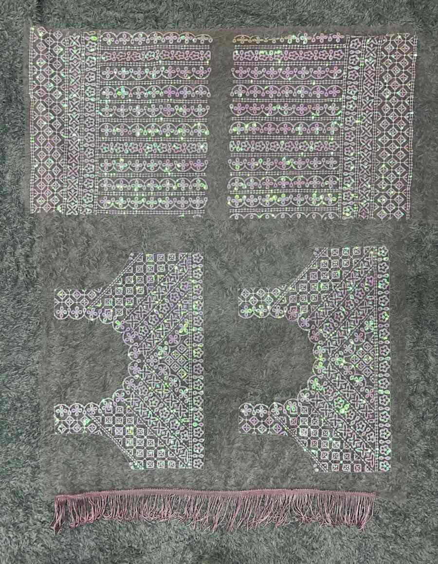 WORK :- 3 MM SEQUENCE WORK AND MULTICOLOUR THREAD WORK WITH CUT WORK BORDER