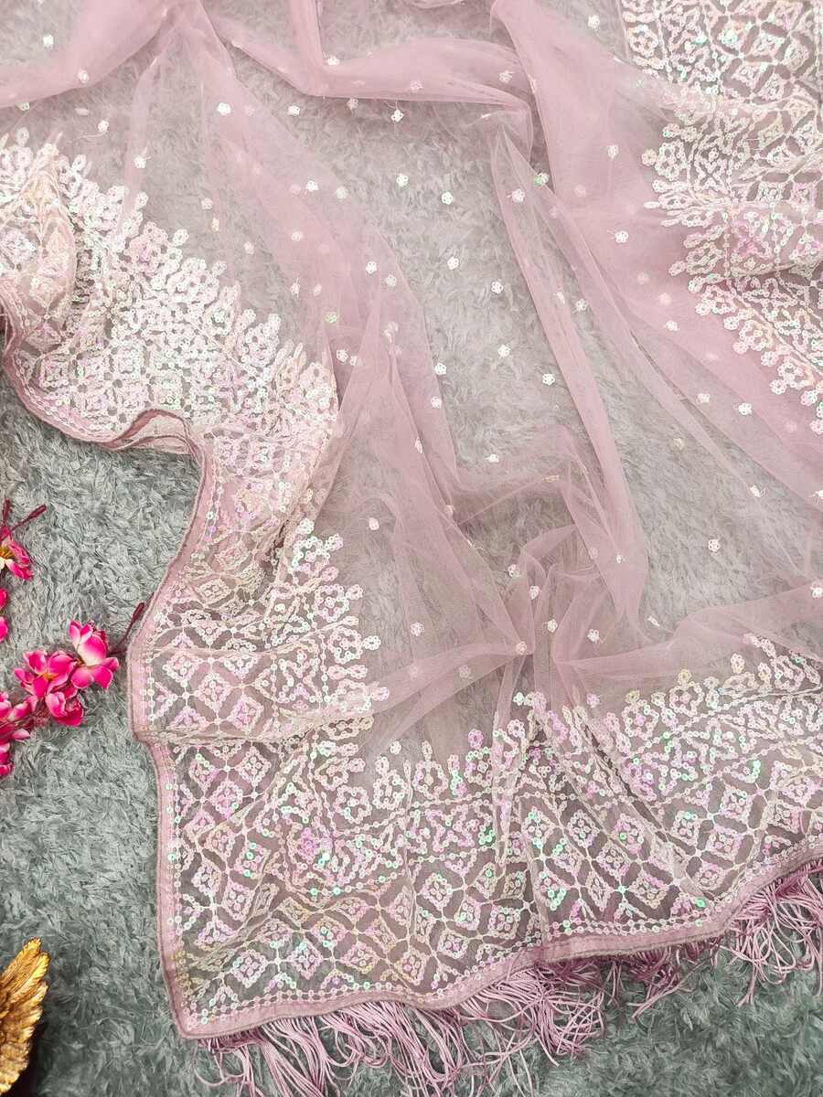 FANCY NET SEQUENCE EMBROIDERY TUSSLE WORK SAREE WITH UNSTITCHED BLOUSE BABY PINK
