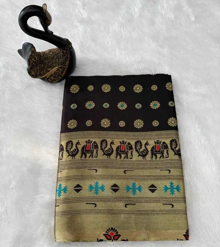 FANCY PAITHANI SILK ZARI WEAVING WORK SAREE WITH UNSTITCHED BLOUSE BLACK