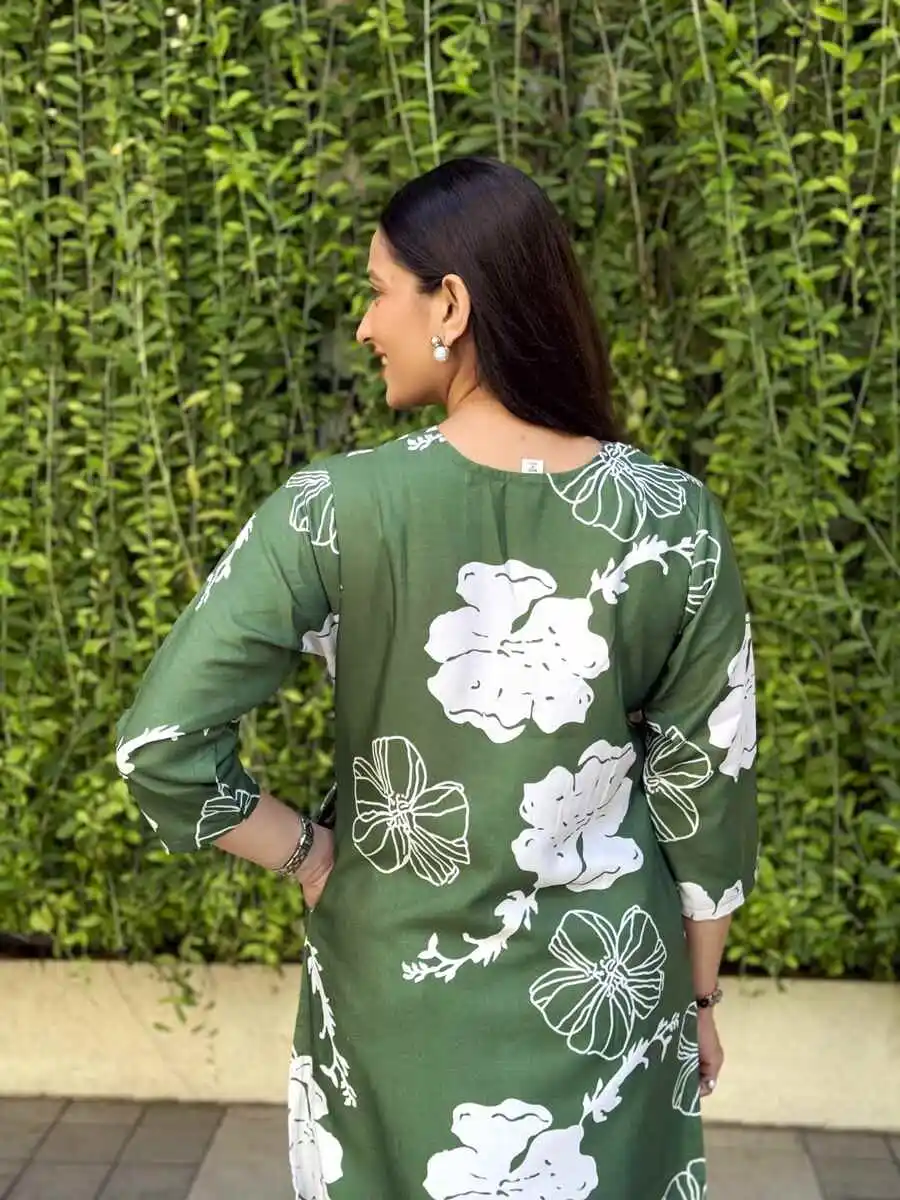 FANCY POLY RAYON DIGITAL PRINT WORK CO-ORD SET GREEN