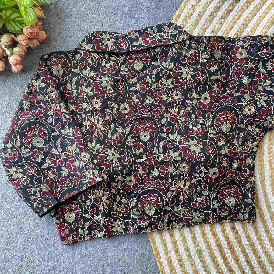 FANCY PURE COTTON AJRAKH PRINT WORK STITCHED BLOUSE BLACK