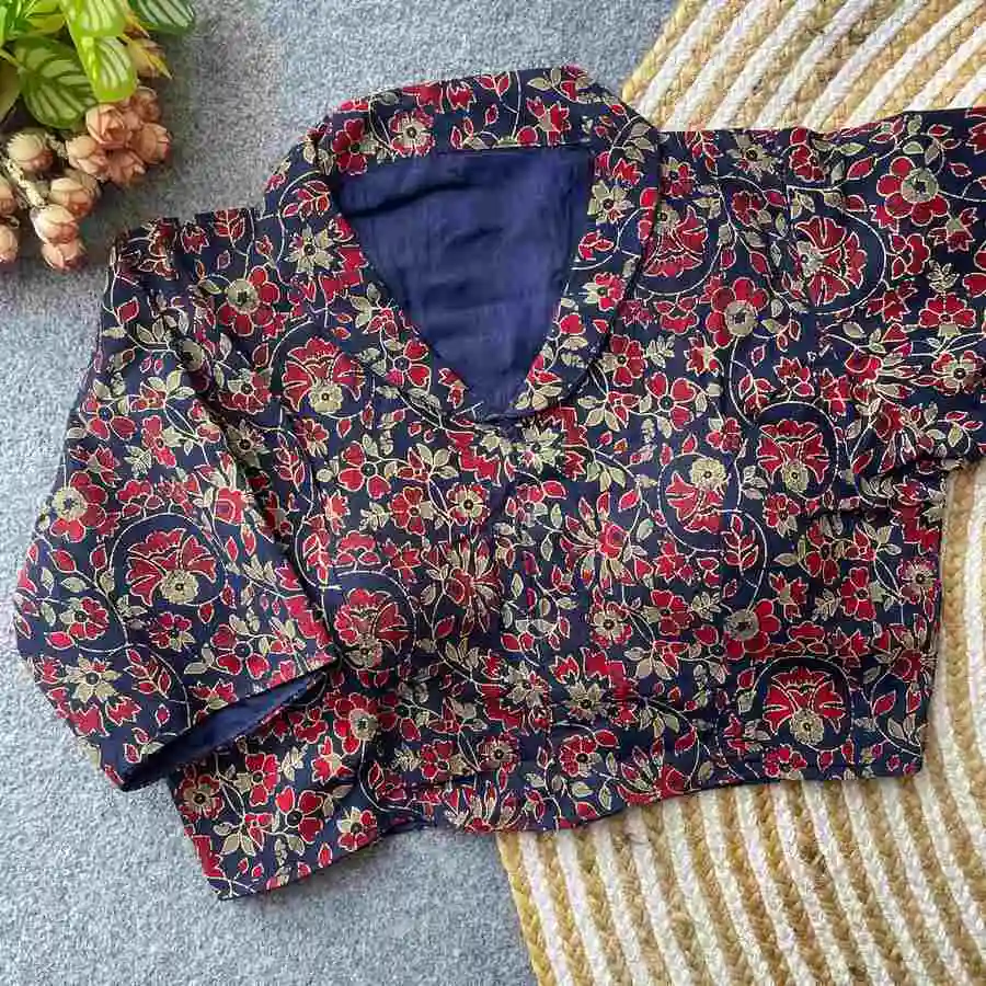 FANCY PURE COTTON AJRAKH PRINT WORK STITCHED BLOUSE NAVY BLUE