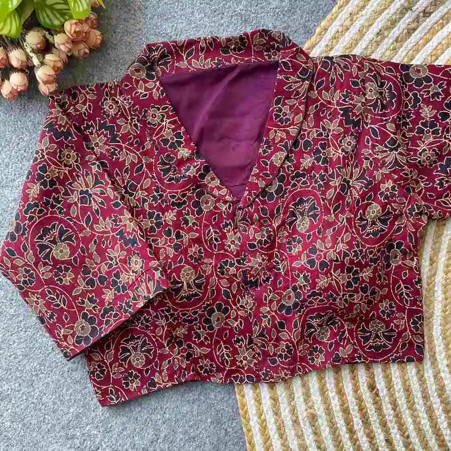 FANCY PURE COTTON AJRAKH PRINT WORK STITCHED BLOUSE WINE