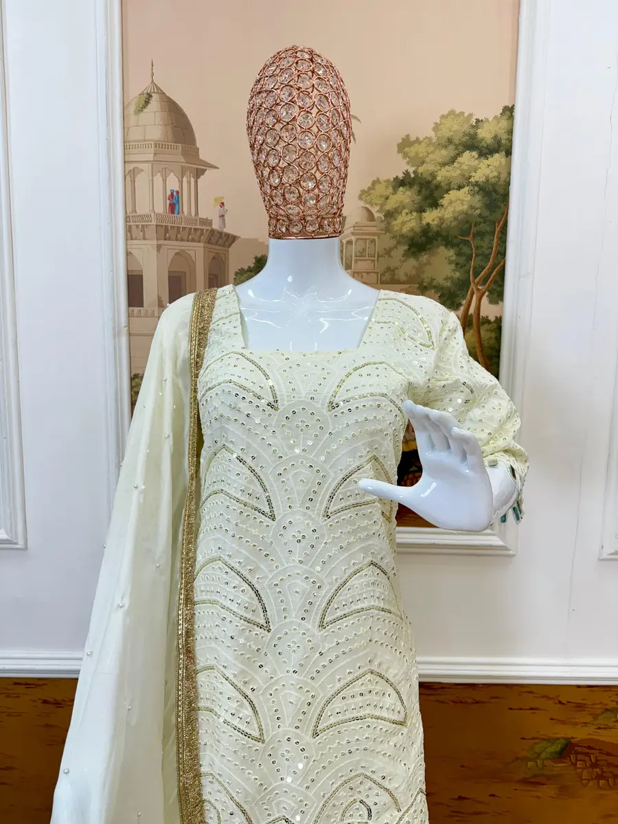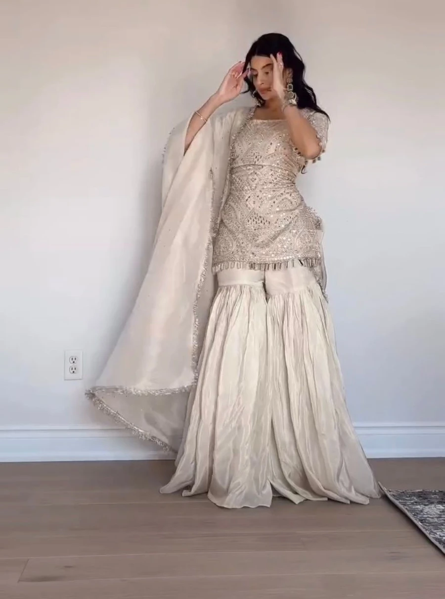FANCY RANGOLI SILK EMBROIDERY WORK TOP SHARARA WITH DUPATTA OFF WHITE