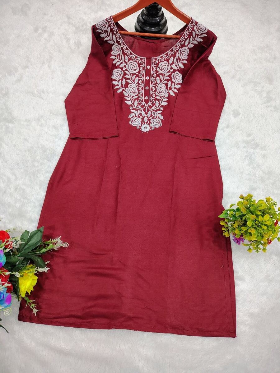FANCY RAYON COTTON EMBROIDERY WORK SHORT KURTI MAROON