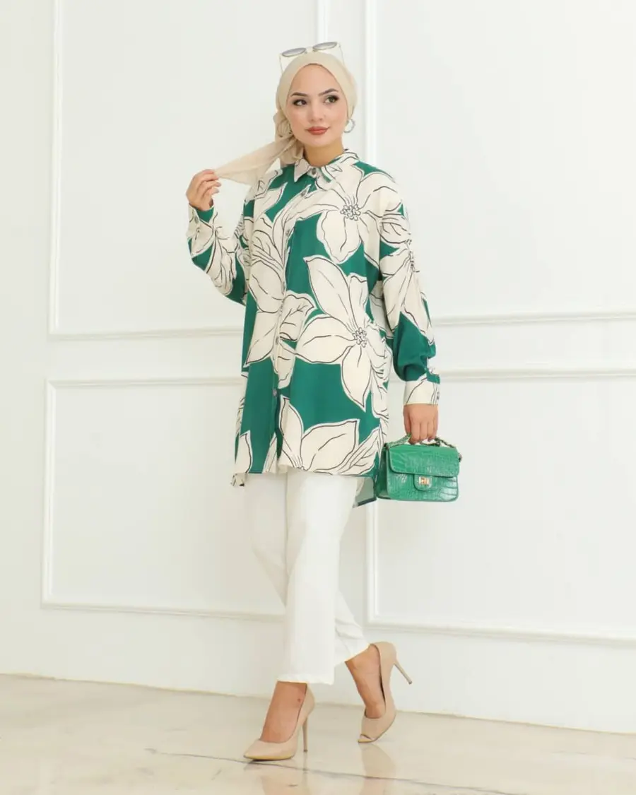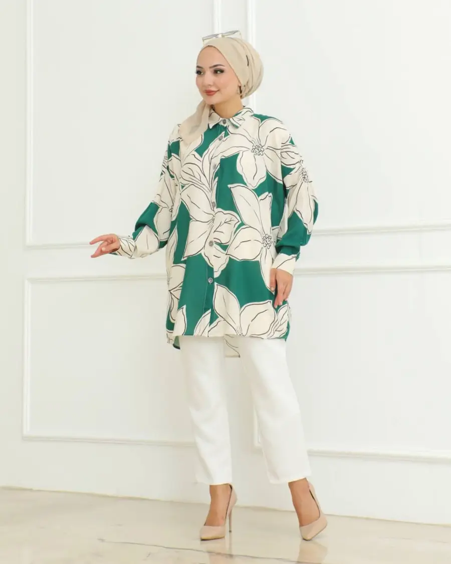 FANCY RAYON DIGITAL PRINT WORK TOP PENT WITH CAP GREEN