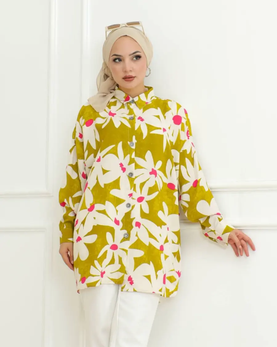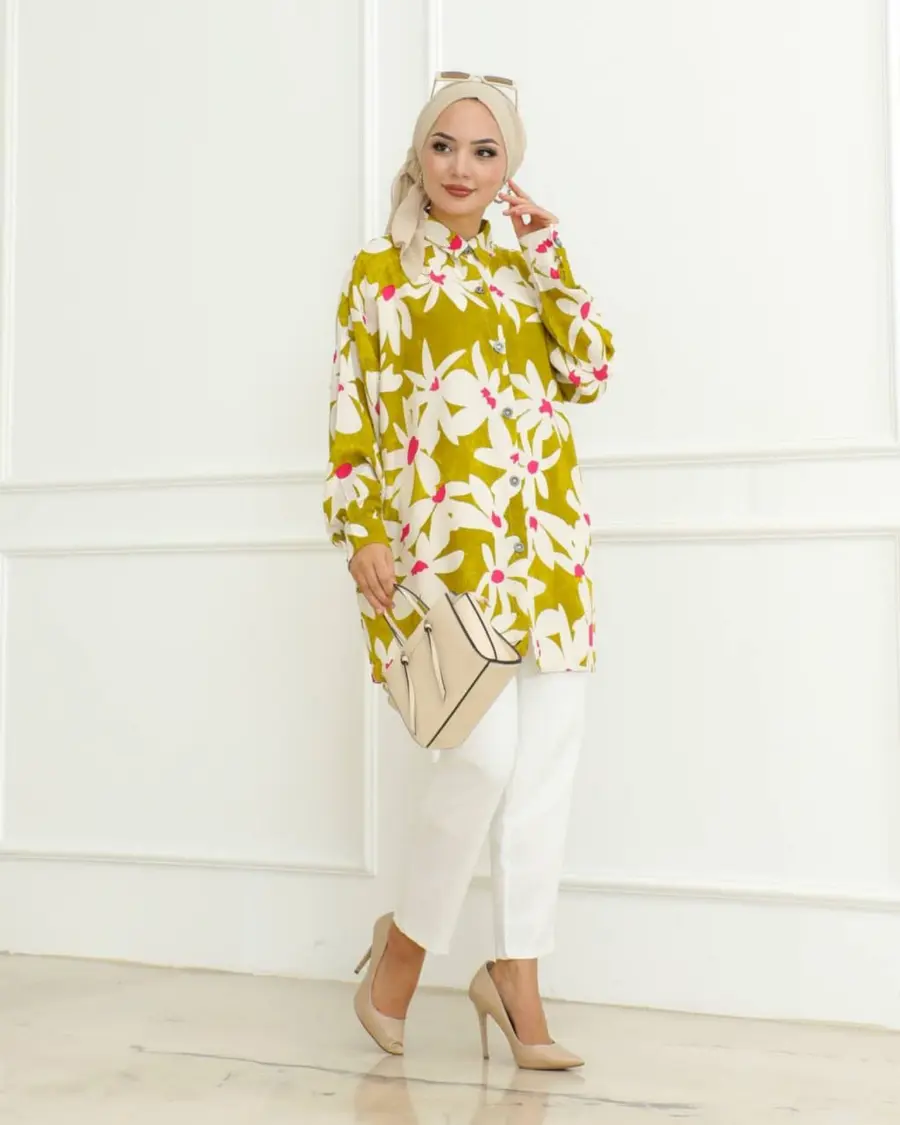 FANCY RAYON DIGITAL PRINT WORK TOP PENT WITH CAP LEMON