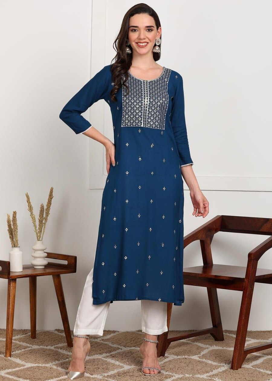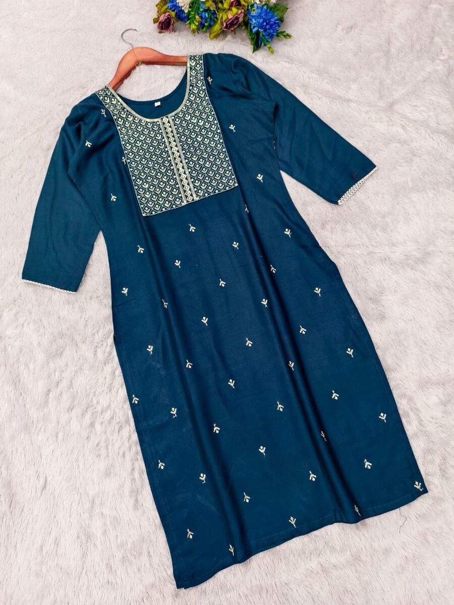 FANCY RAYON EMBROIDERY WORK KURTI TEAL