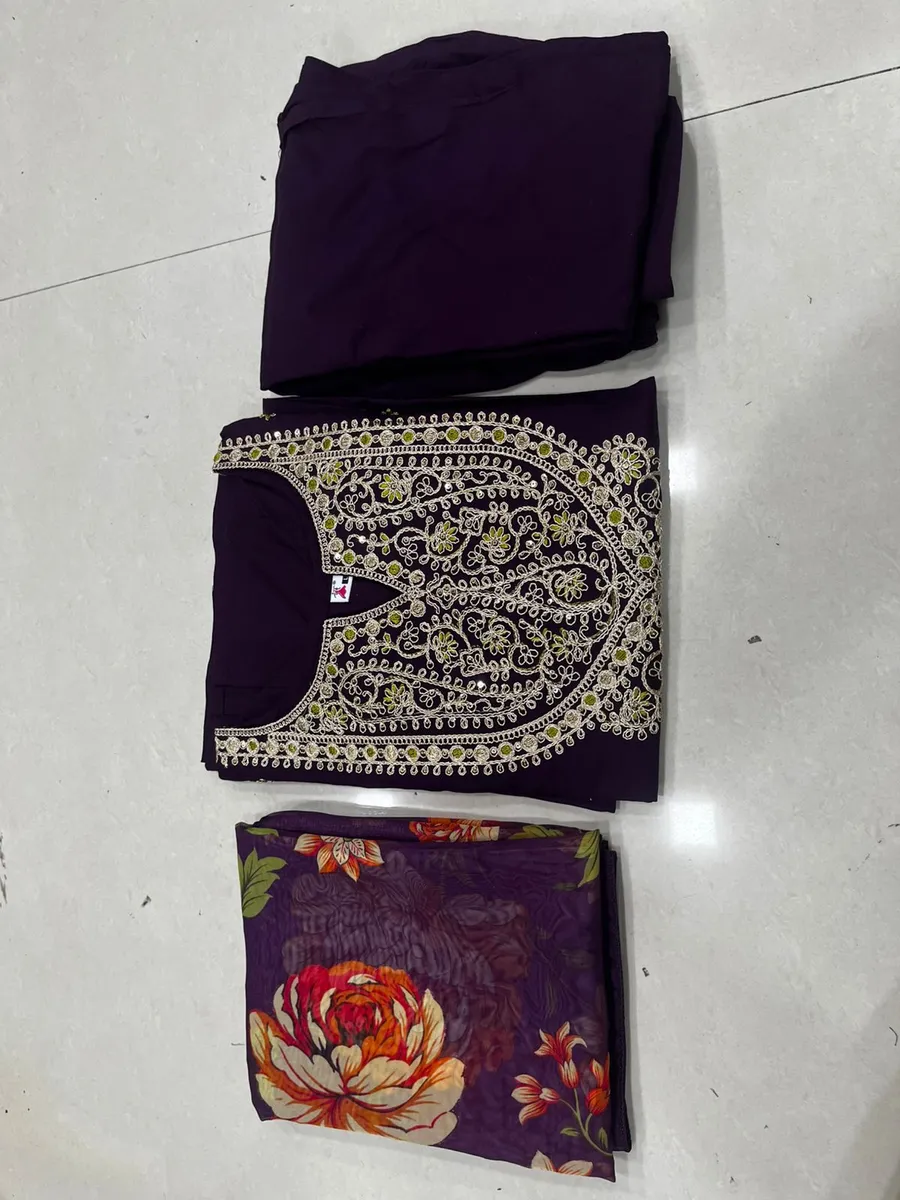 FANCY RAYON EMBROIDERY WORK TOP BOTTOM WITH DUPATTA PURPLE