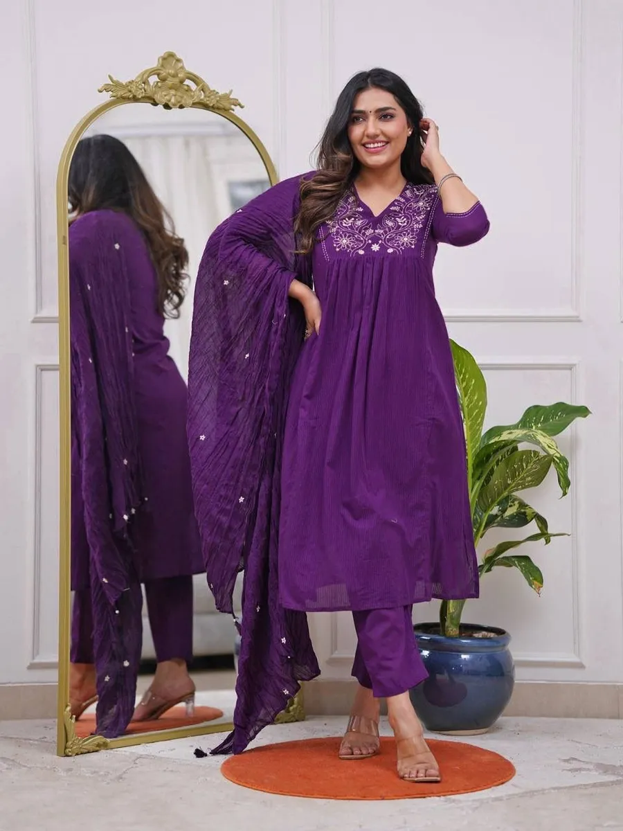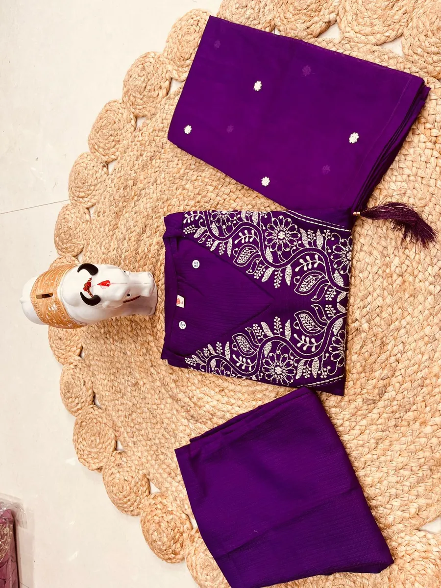 FANCY RAYON EMBROIDERY WORK TOP BOTTOM WITH DUPATTA PURPLE