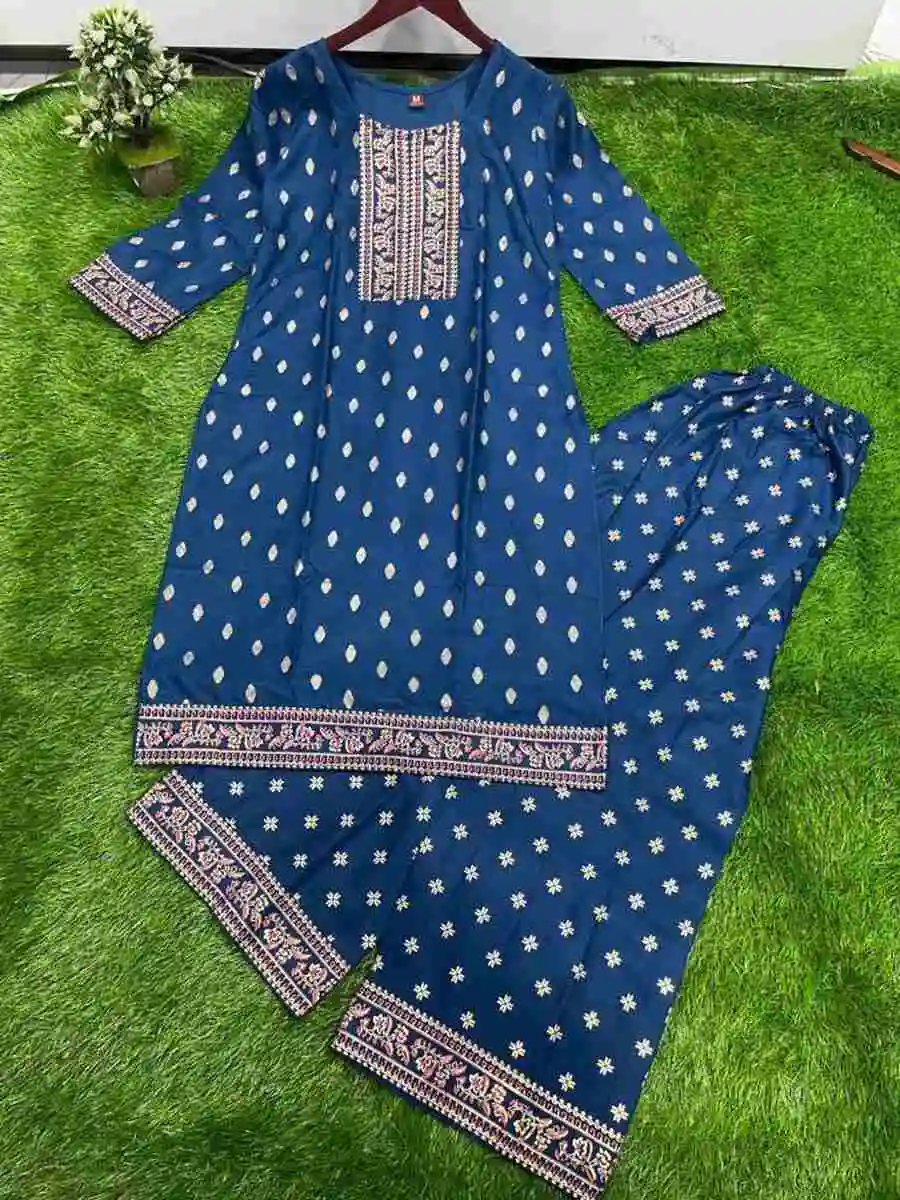 FANCY RAYON FOLI WORK TOP PALAZZO SET TEAL
