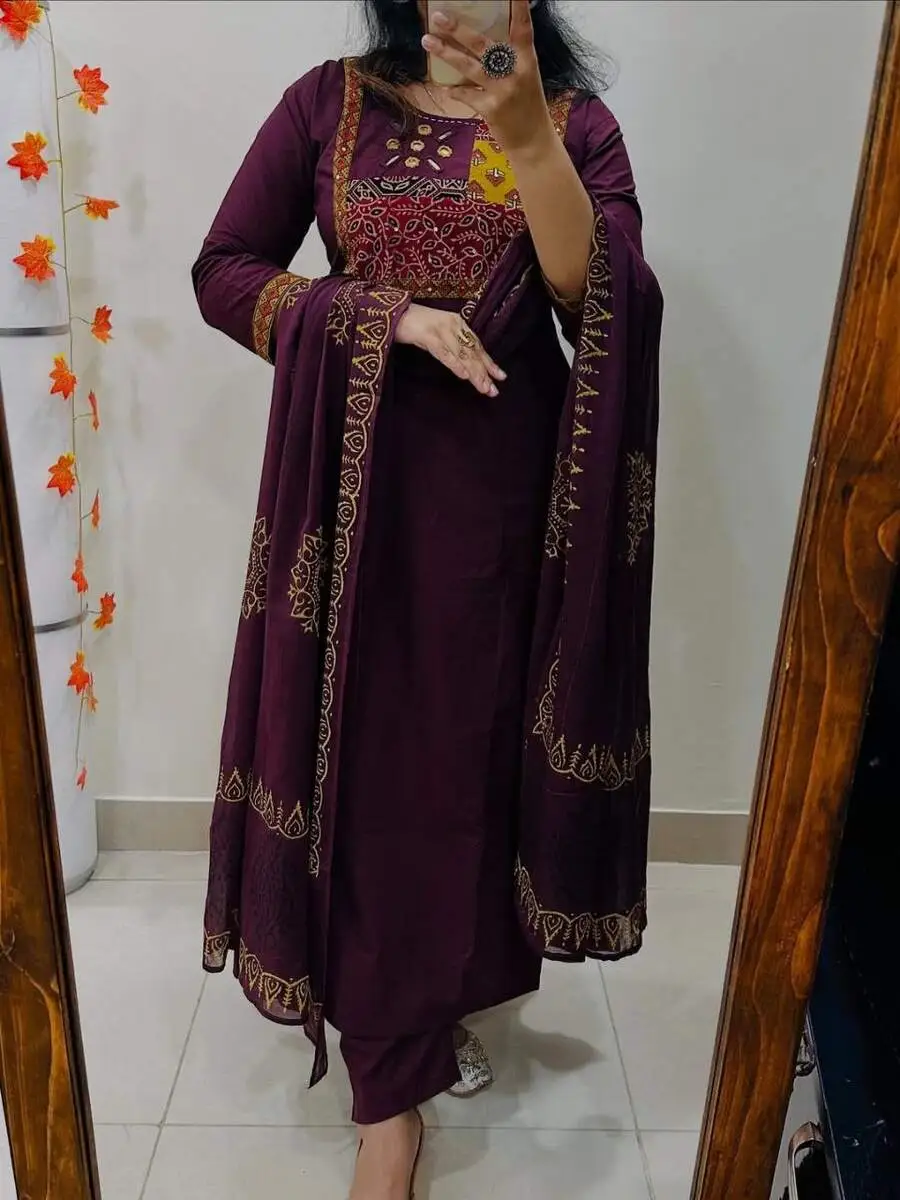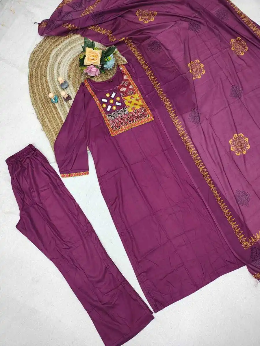 FANCY RAYON MIRROR WORK TOP BOTTOM WITH DUPATTA WINE
