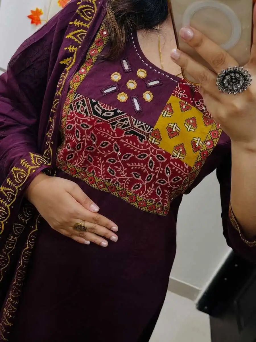 KURTA FABRIC :- PURE COTTON WITH MIRROR WORK