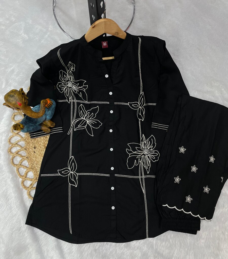FANCY RAYON MULTI EMBROIDERY THREAD WORK CO-ORD SET BLACK