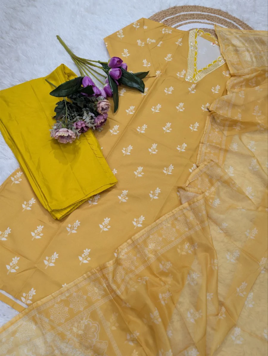 FANCY RAYON SEQUENCE EMBROIDERY WORK TOP BOTTOM WITH DUPATTA YELLOW