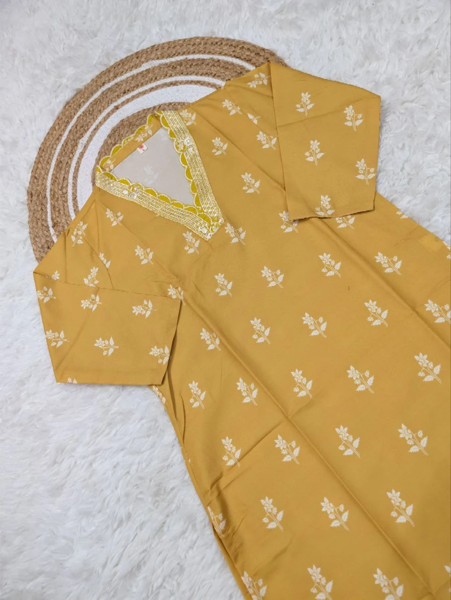 KURTI – COTTON WITH EMBROIDERY AND SEQUENCE WORK
