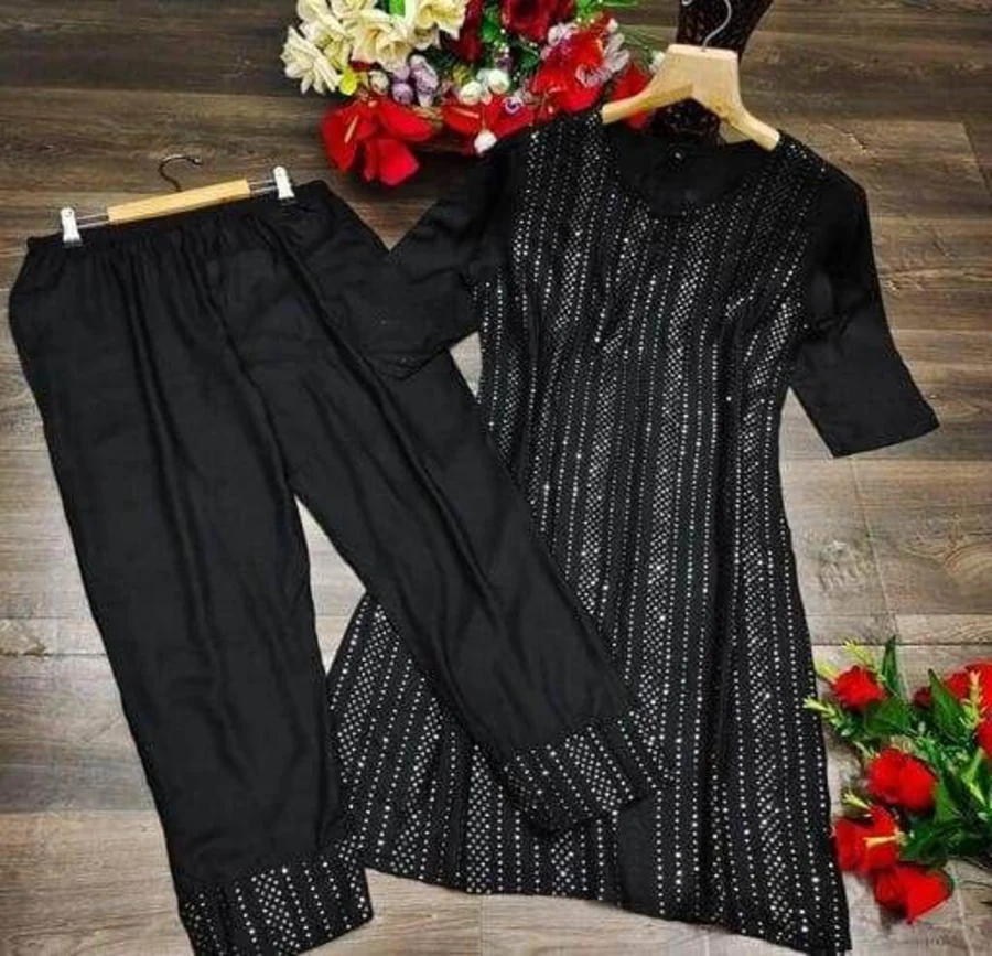 FANCY RAYON SEQUENCE WORK TOP BOTTOM SET BLACK