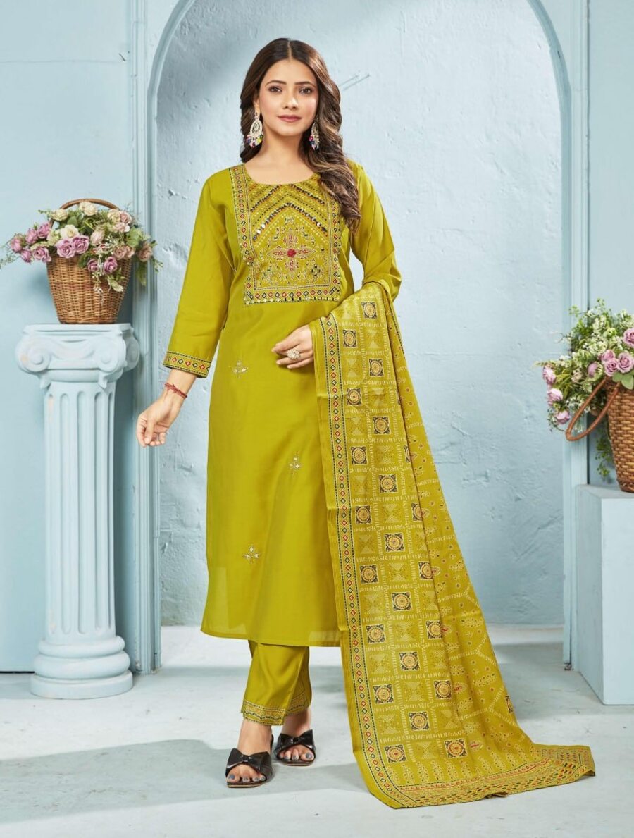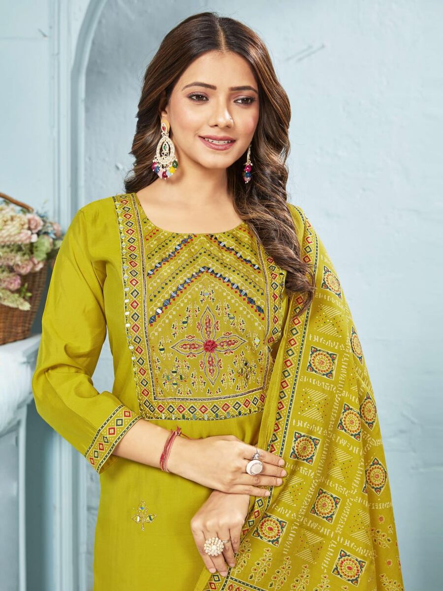 FANCY ROMAN SILK REAL MIRROR HAND WORK TOP BOTTOM WITH DUPATTA PARROT GREEN