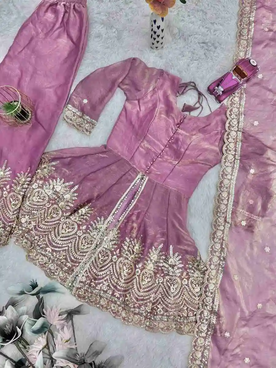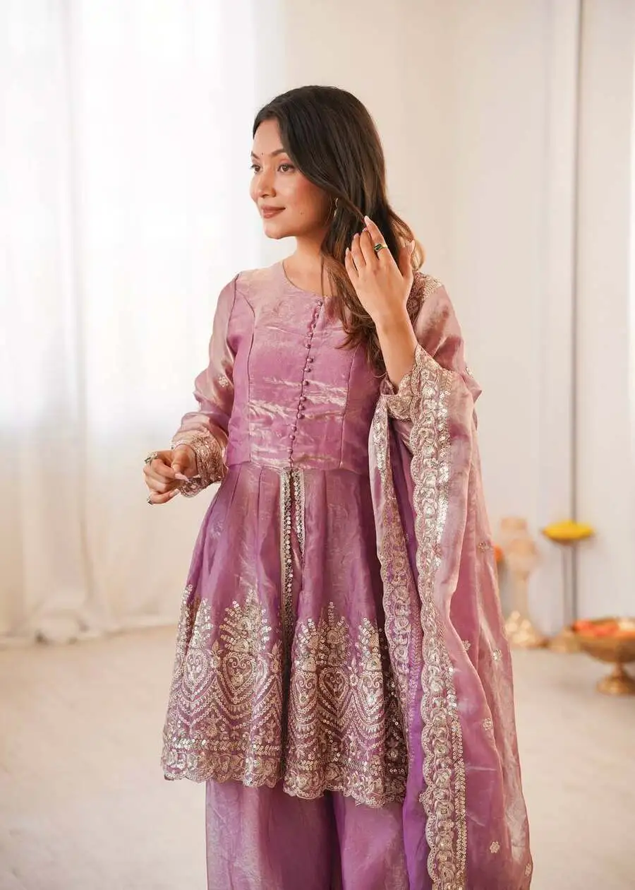 FANCY SATIN SILK EMBROIDERY SEQUENCE WITH REAL MIRROR WORK TOP PALAZZO WITH DUPATTA PINK