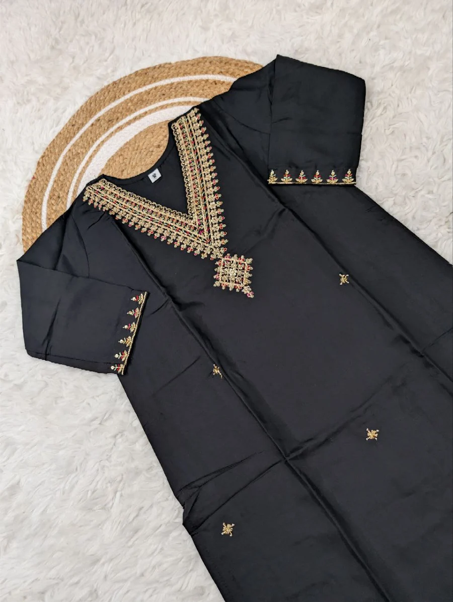 FANCY SHIMMER SILK BEADS EMBROIDERY WORK TOP BOTTOM WITH DUPATTA BLACK