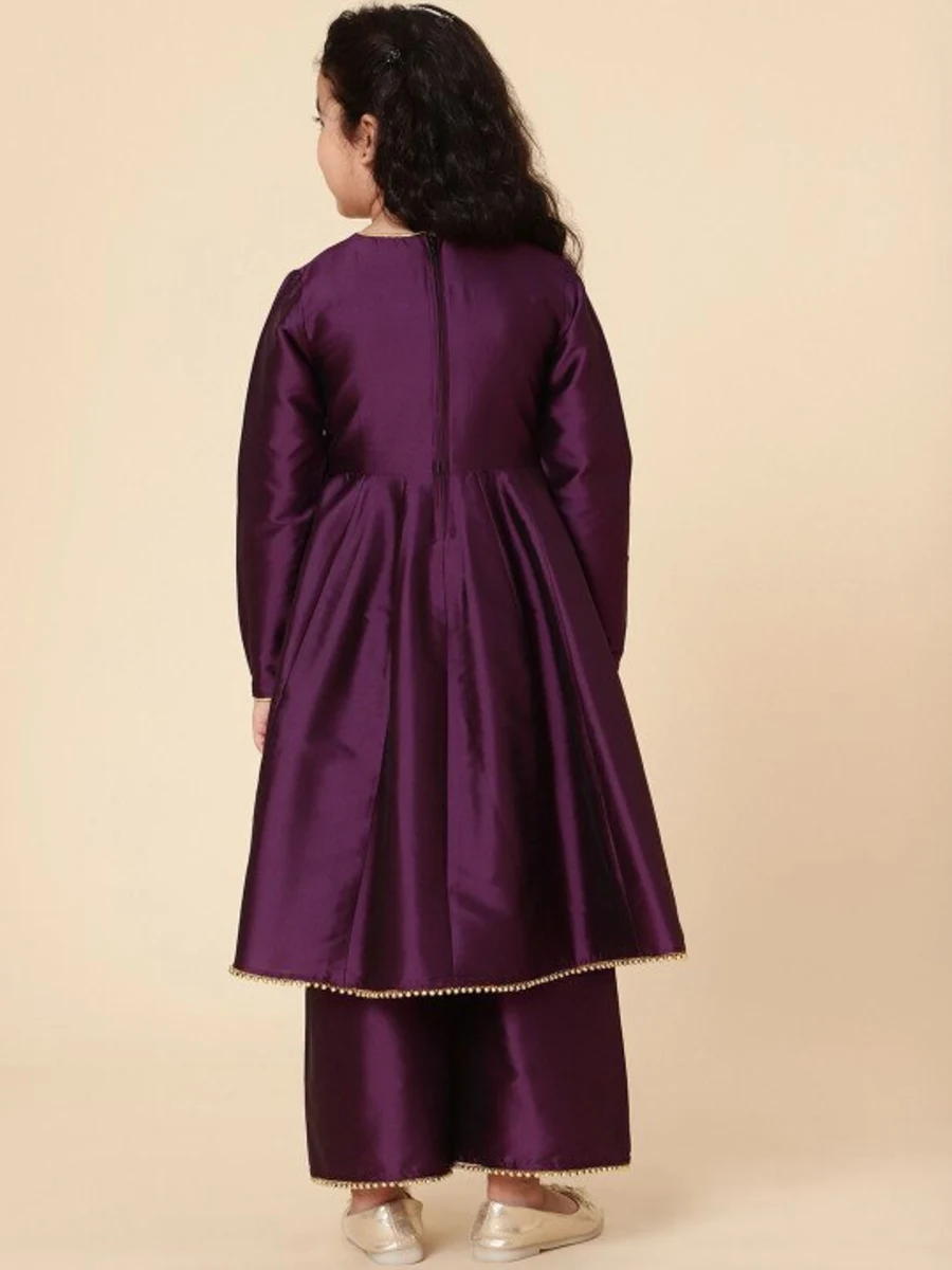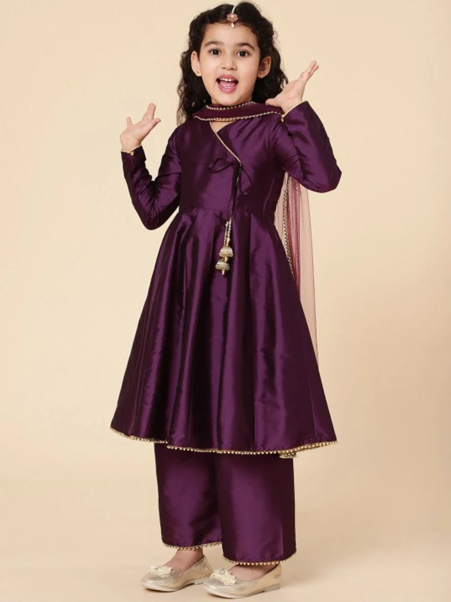 FANCY SILK WOVEN MOTI-LACE BORDER WORK KID’S TOP BOTTOM WITH DUPATTA WINE