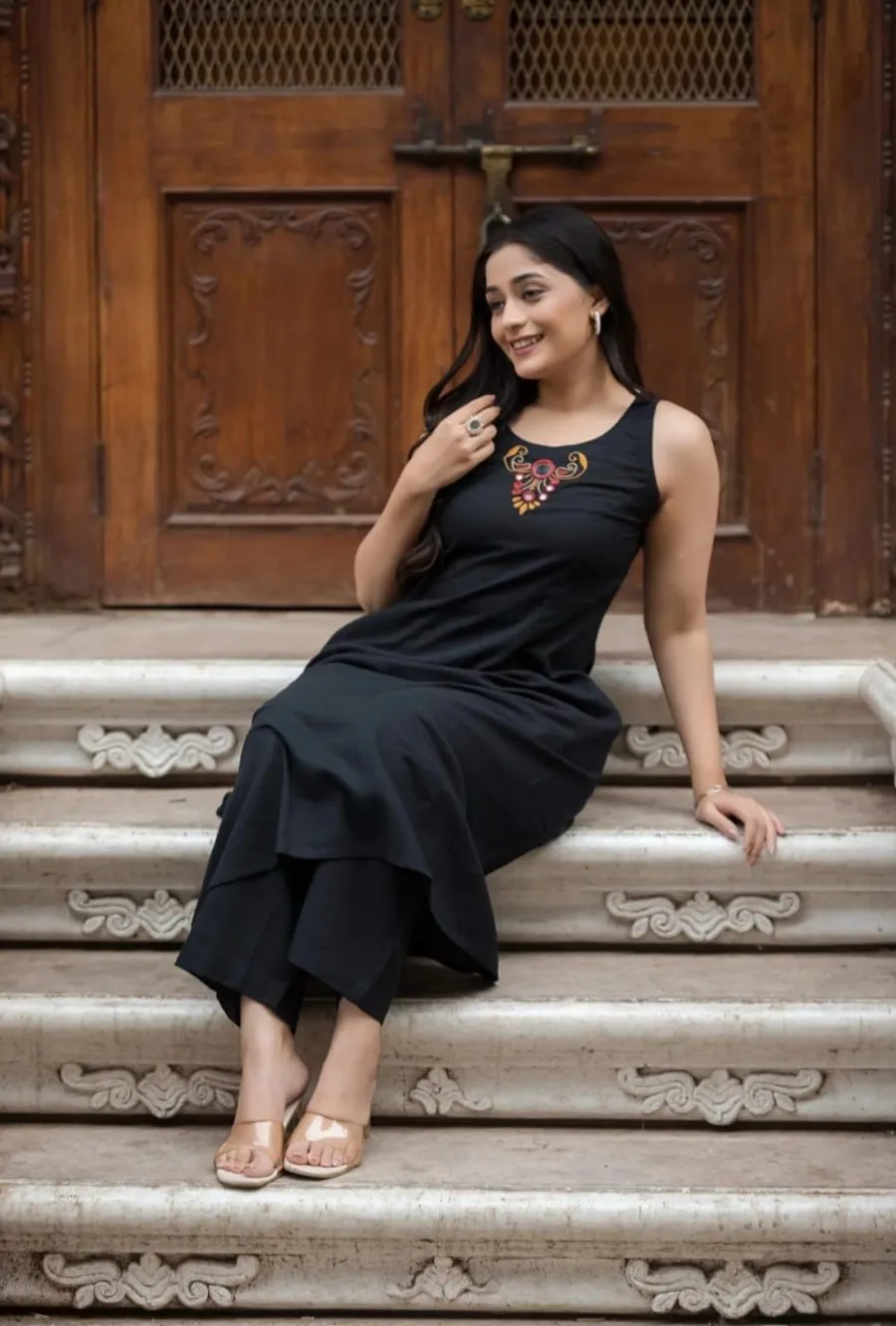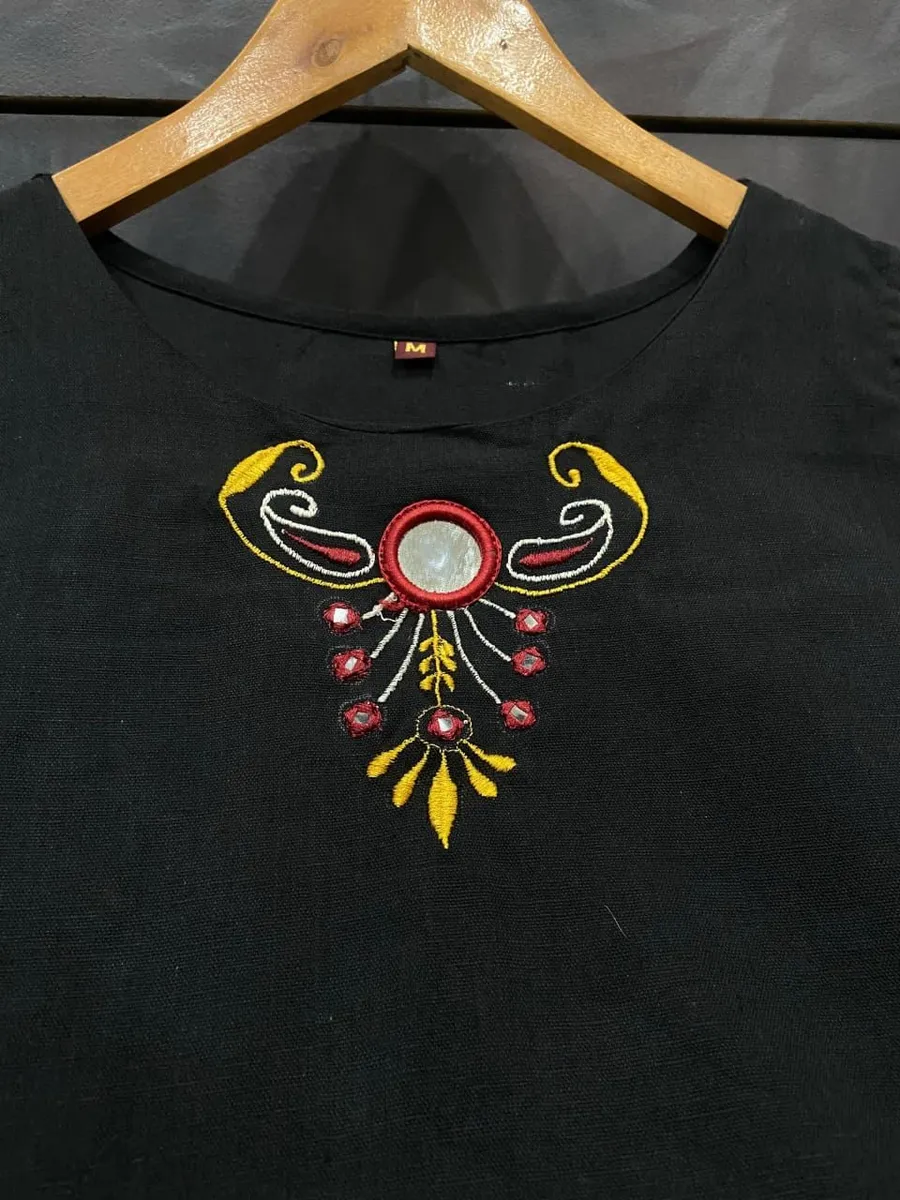FANCY SOFT COTTON HAND WORK TOP PENT SET BLACK