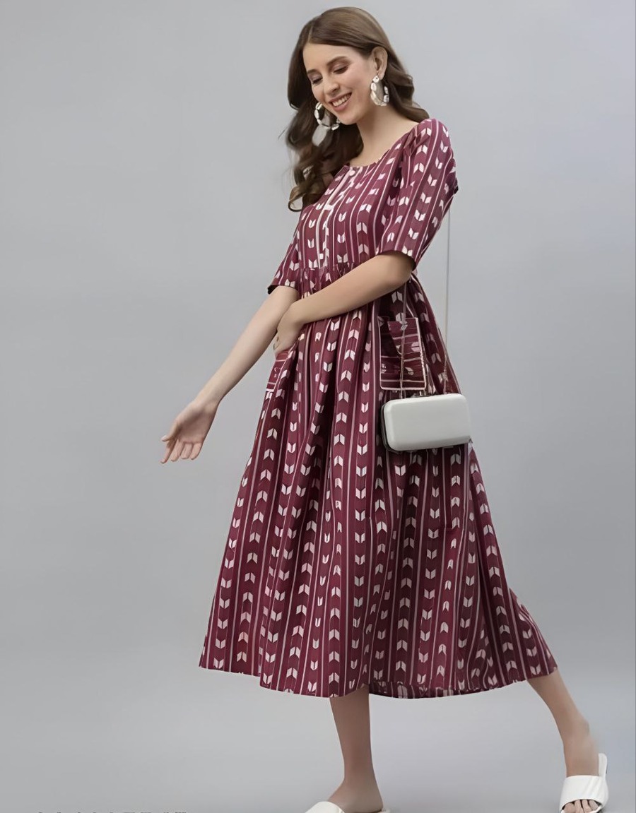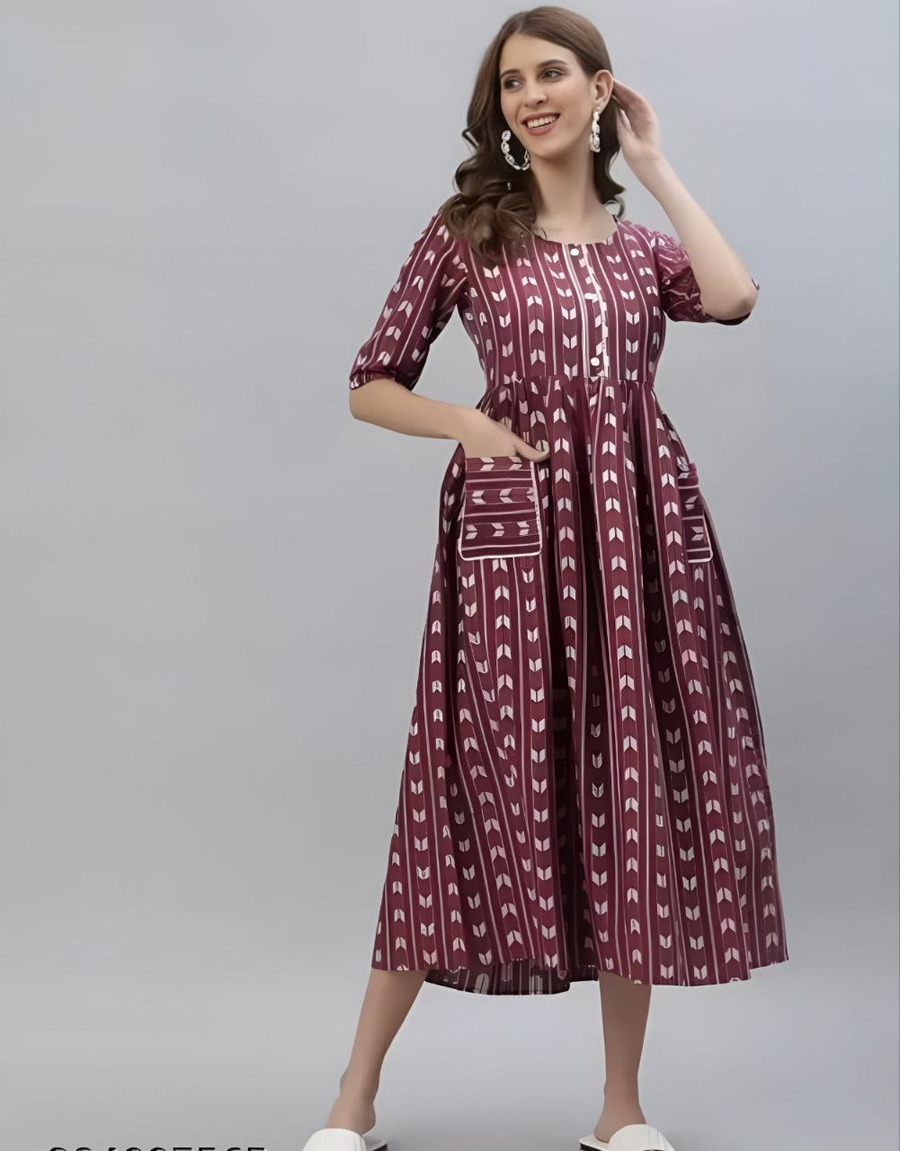 FANCY SOUTH COTTON ATTRACTIVE PATTERN WORK ONLY KURTI WINE