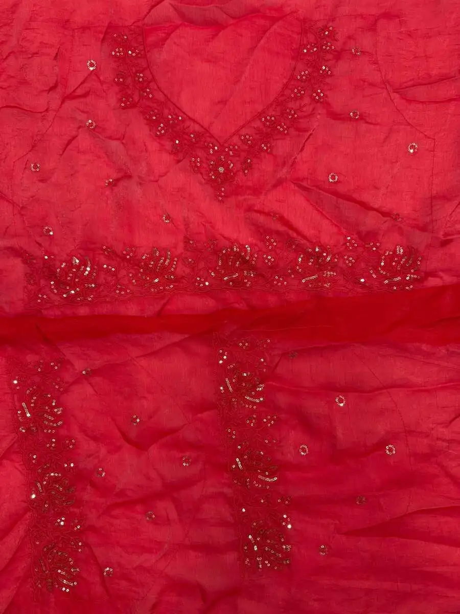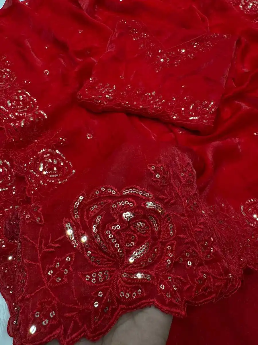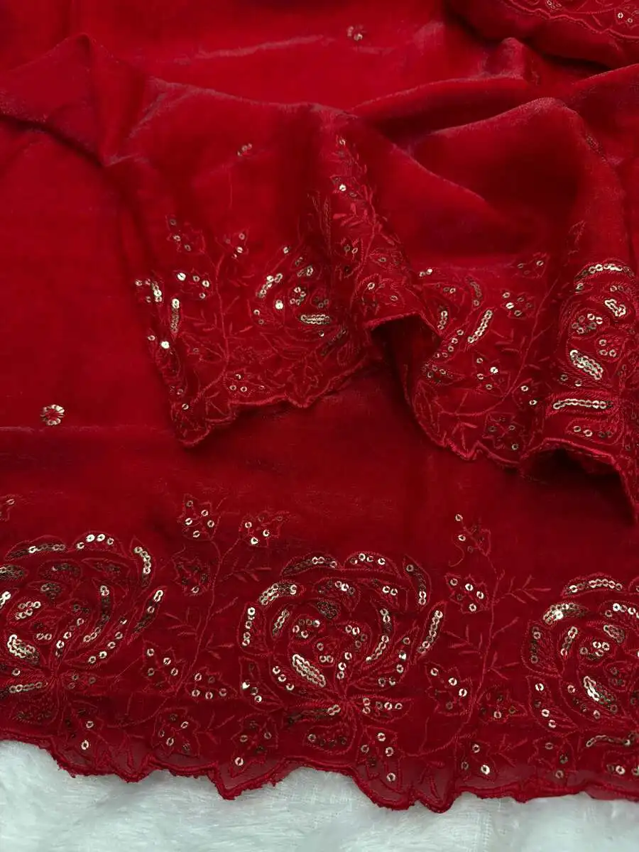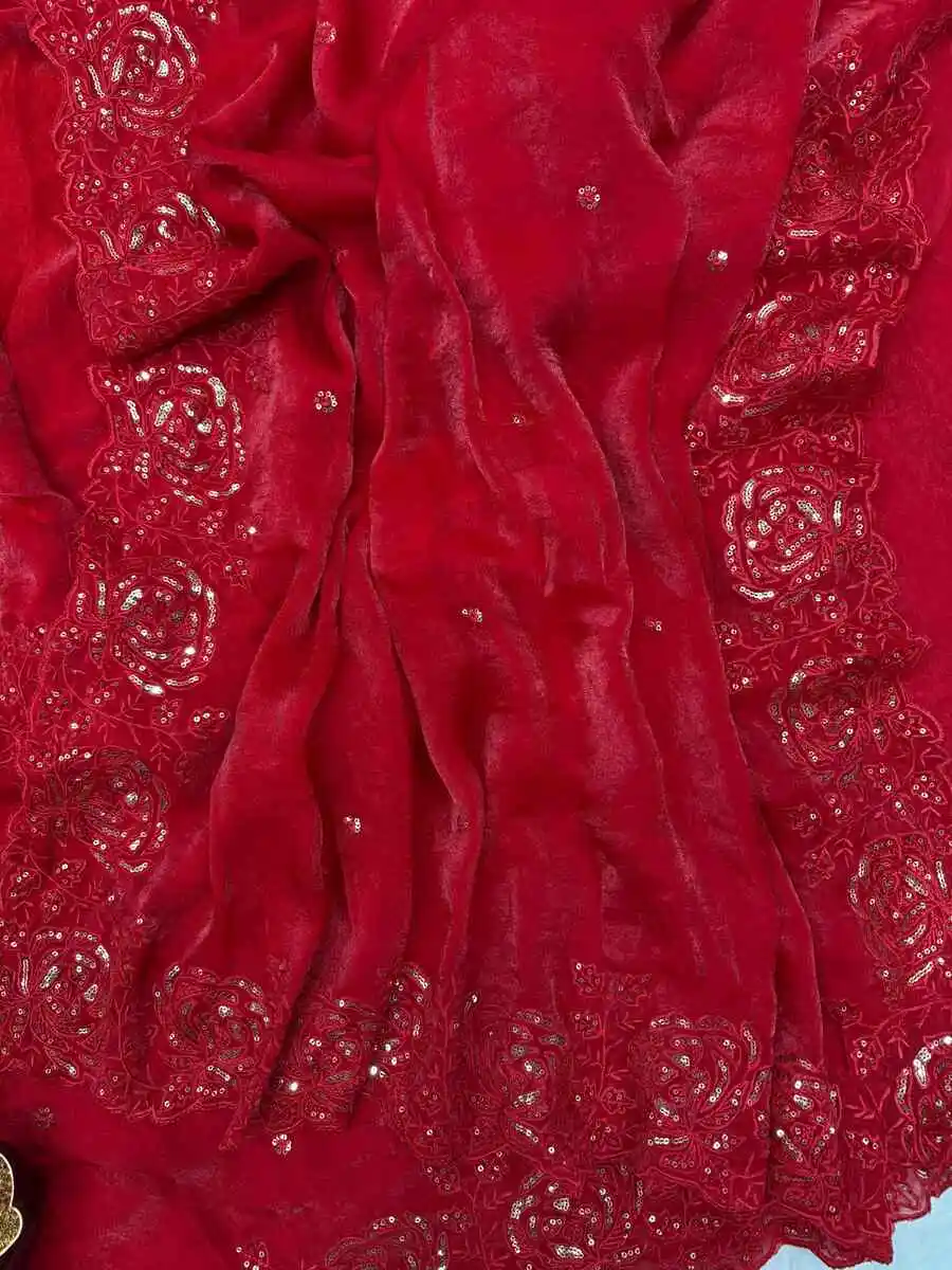 FANCY SPACE SILK BEAUTIFUL SEQUANCE AND THREAD EMBROIDERY WORK SAREE WITH UNSTITCHED BLOUSE RED