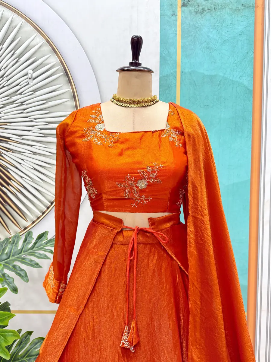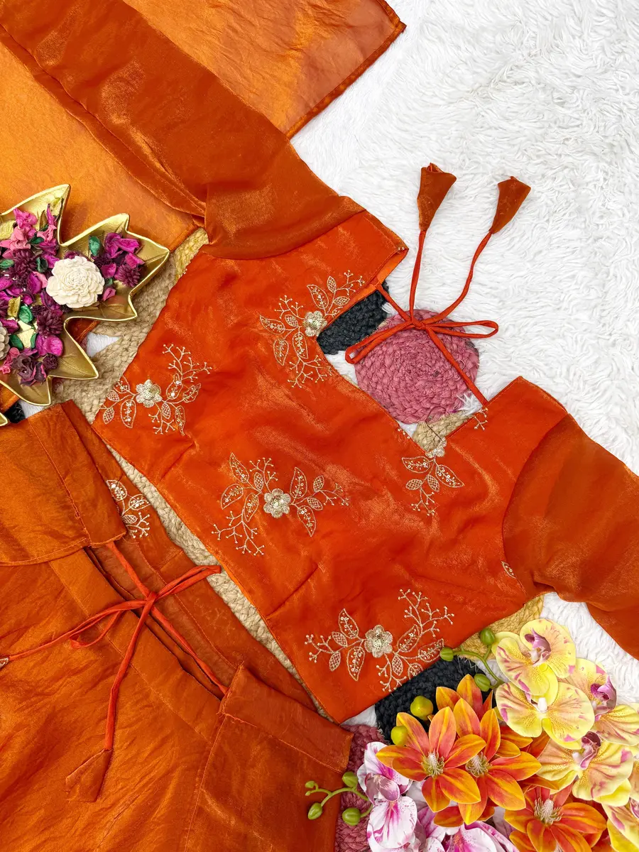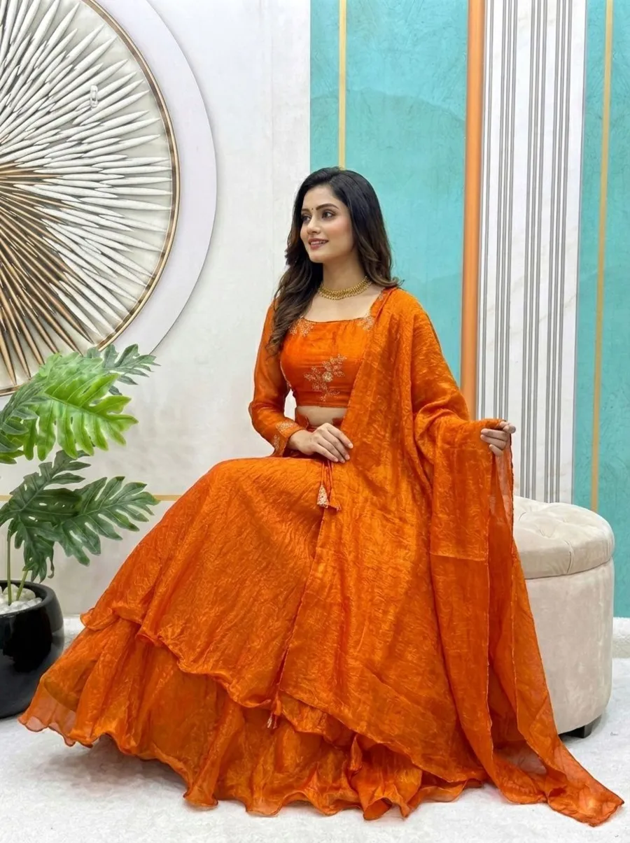 FANCY SPACE SILK SEQUENCE EMBROIDERY WORK LEHENGA BLOUSE WITH EXTRA FRILLS AND DUPATTA ORANGE