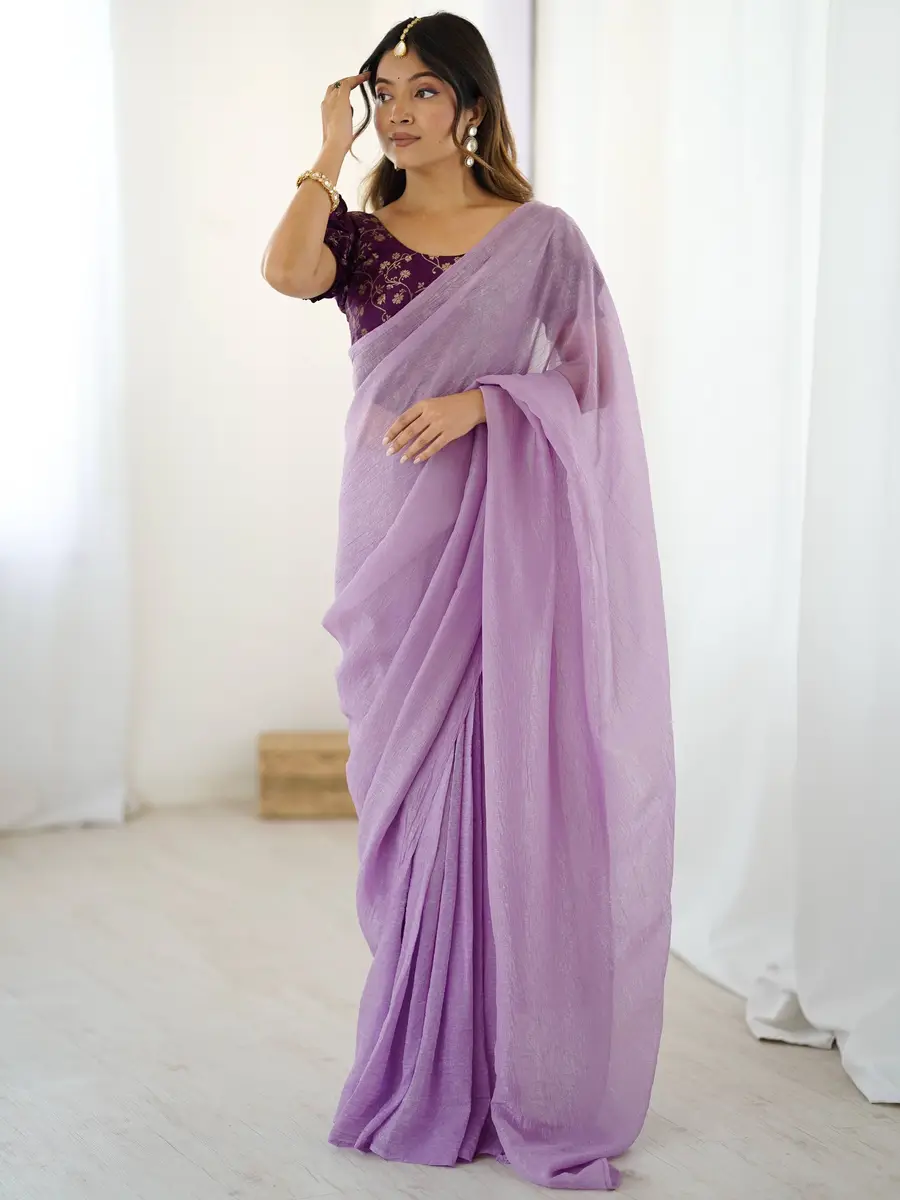 FANCY SPARKLE SILK PLAIN READY TO WEAR SAREE WITH STITCHED BLOUSE LAVENDER