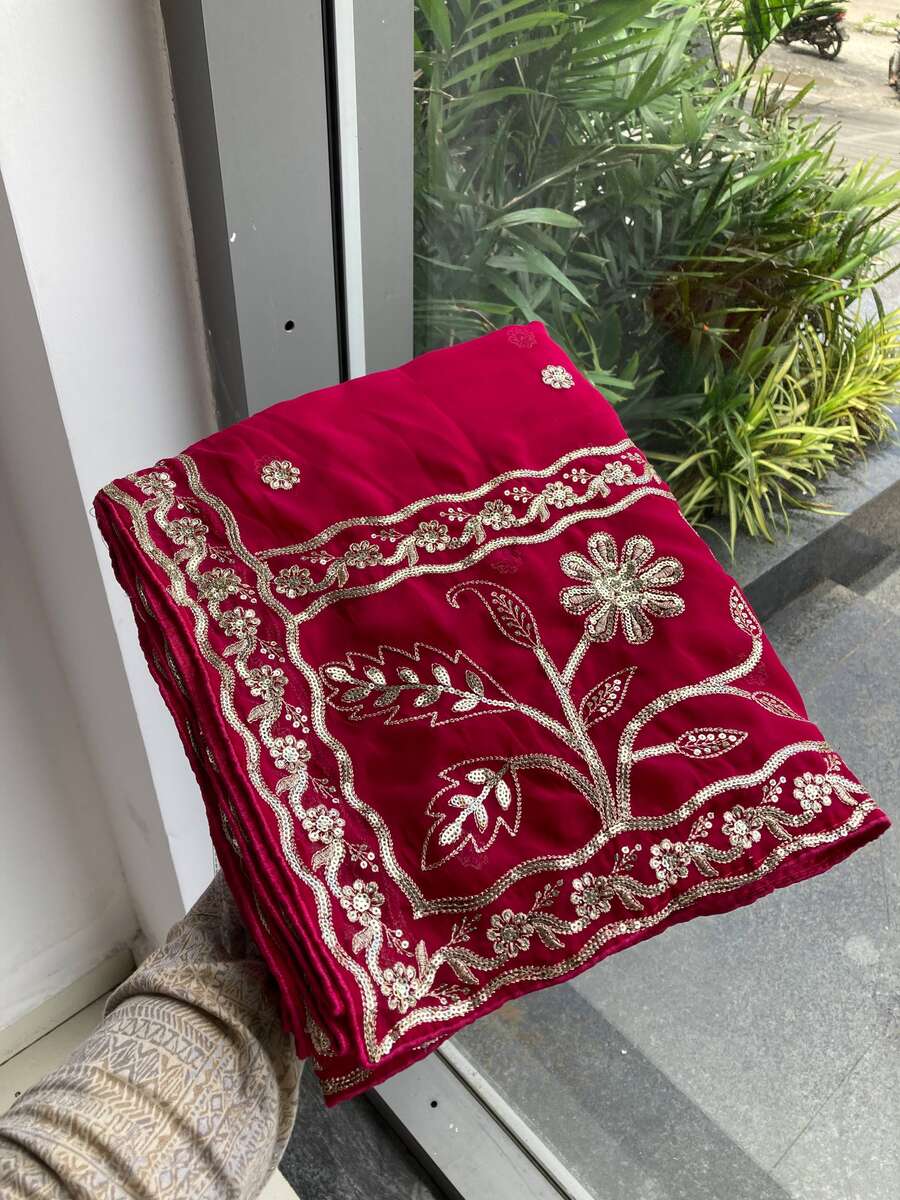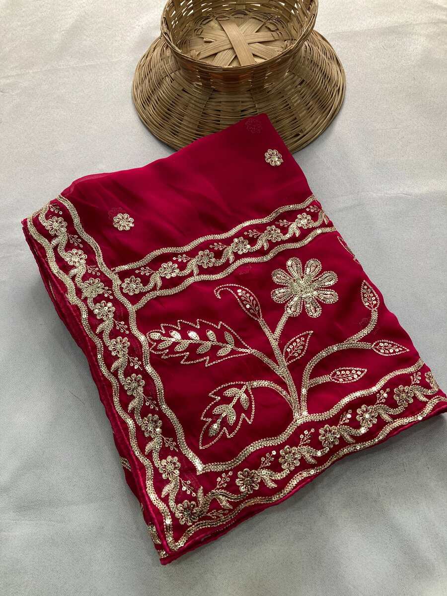 SAREE : PURE ORGANZA SILK FABRIC WITH SEQUENCE EMBROIDERY WITH BEAUTIFUL ARC CUTTING BORDER