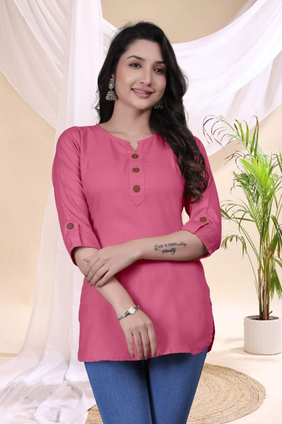 FANCY TESLA COTTON FRONT SIDE BUTTON WORK ONLY TOP PINK
