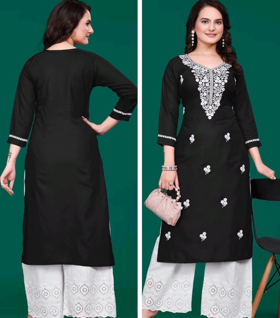 FANCY TESLA SLUB EMBROIDERY WORK KURTI BLACK