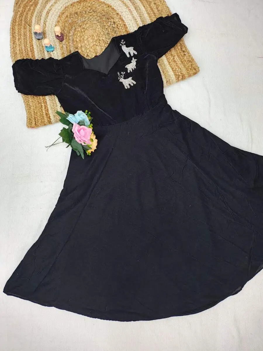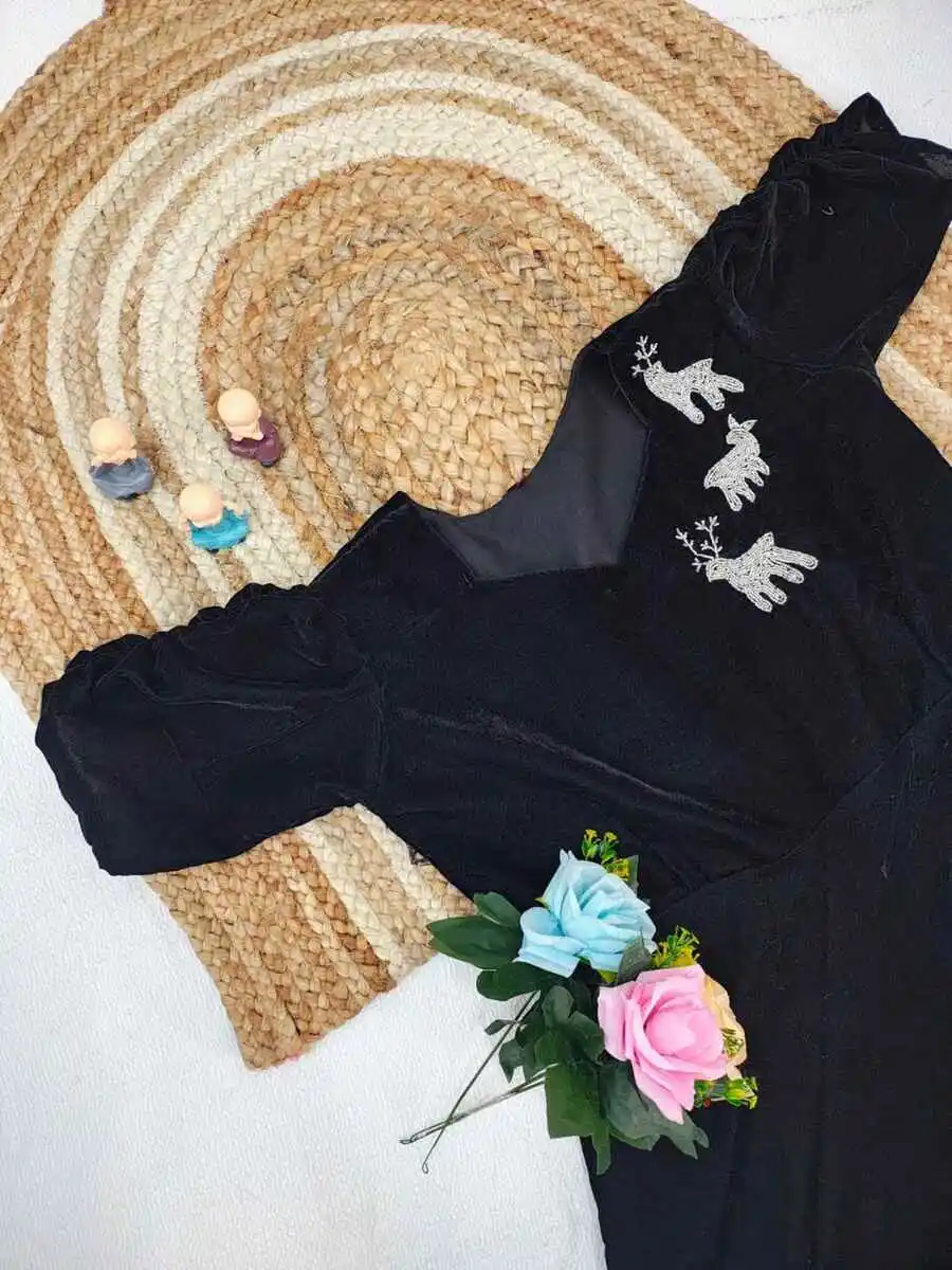 FANCY VELVET MAGGAM (AARI )WORK ONE PIECE DRESS BLACK