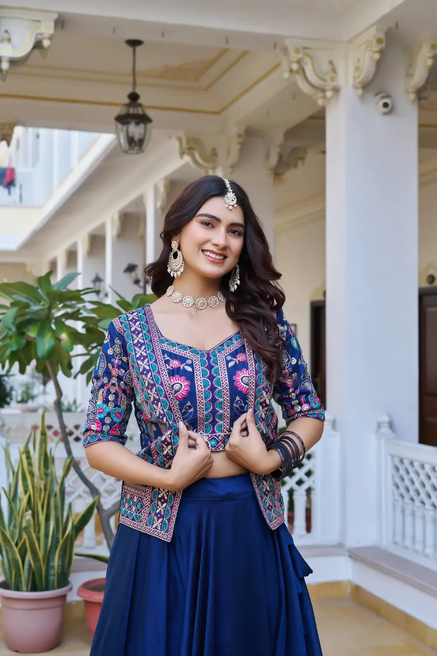 FANCY VICHITRA EMBROIDERY THARED WORK LEHENGA CHOLI WITH KOTI BLUE