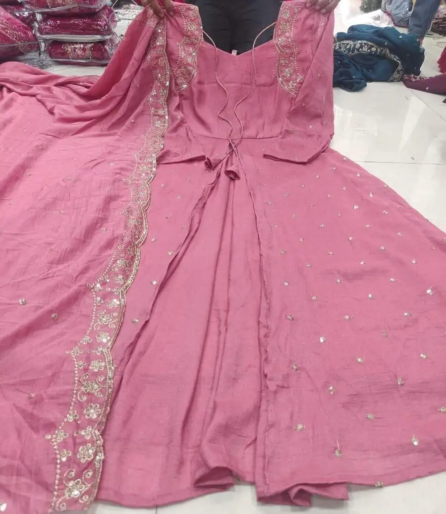 FANCY VICHITRA SILK EMBROIDERY FINELY CRAFTED THREAD WORK ANARKALI WITH DUPATTA BABY PINK
