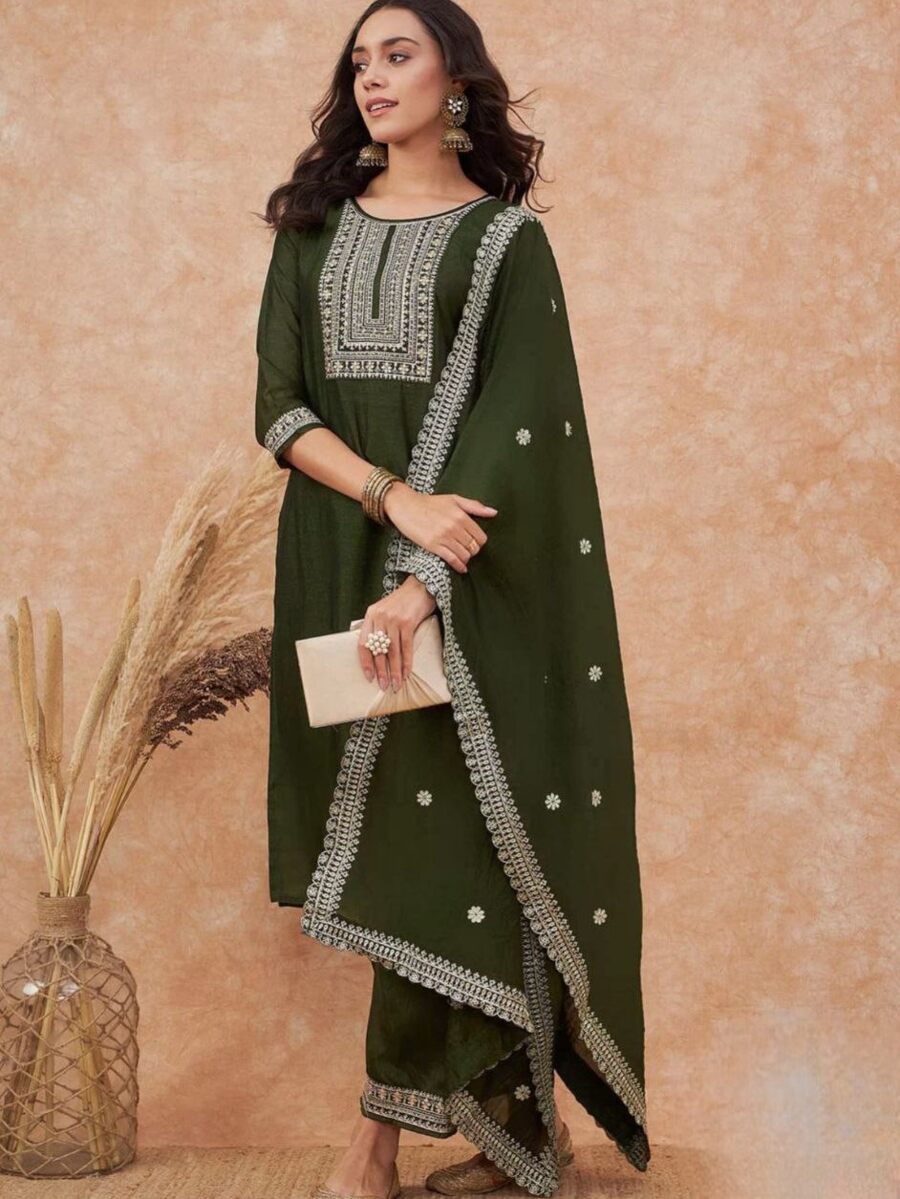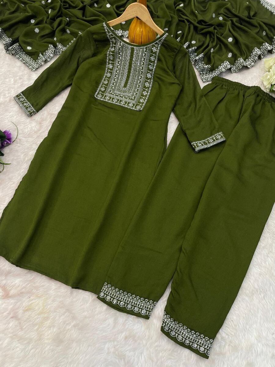 FANCY VICHITRA SILK EMBROIDERY WORK TOP BOTTOM WITH DUPATTA MEHDNI