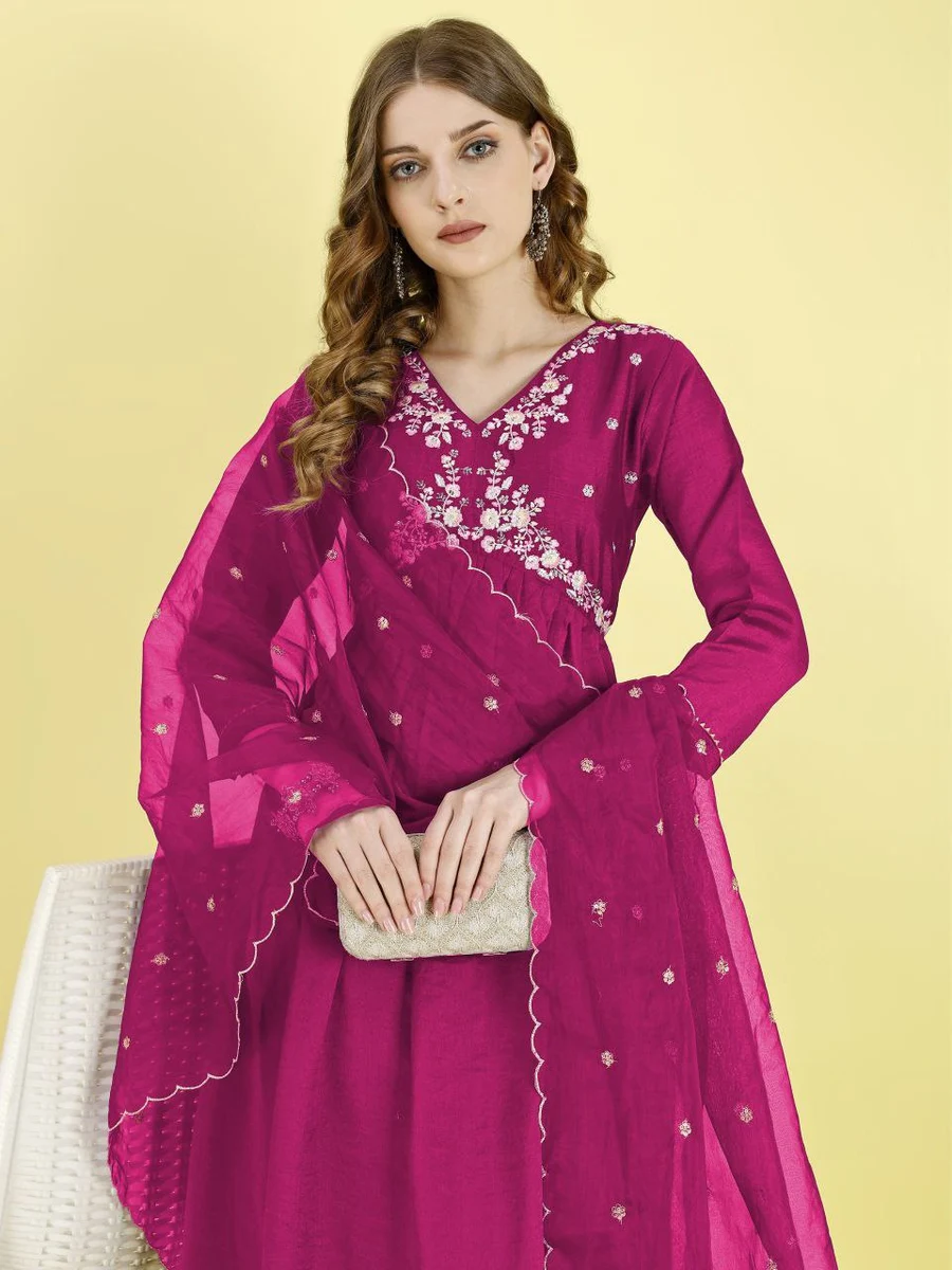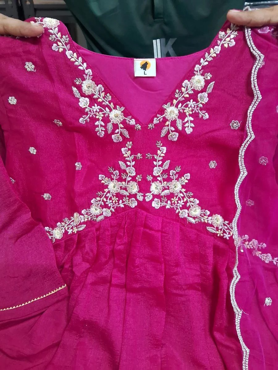 FANCY VICHITRA SILK EMBROIDERY WORK TOP BOTTOM WITH DUPATTA PINK