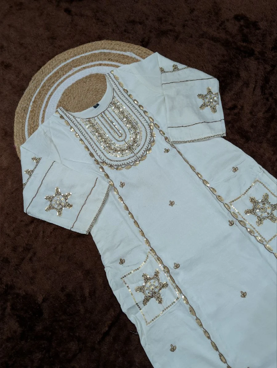 KURTI – COTTON WITH EMBROIDERY AND SEQUENCE WORK