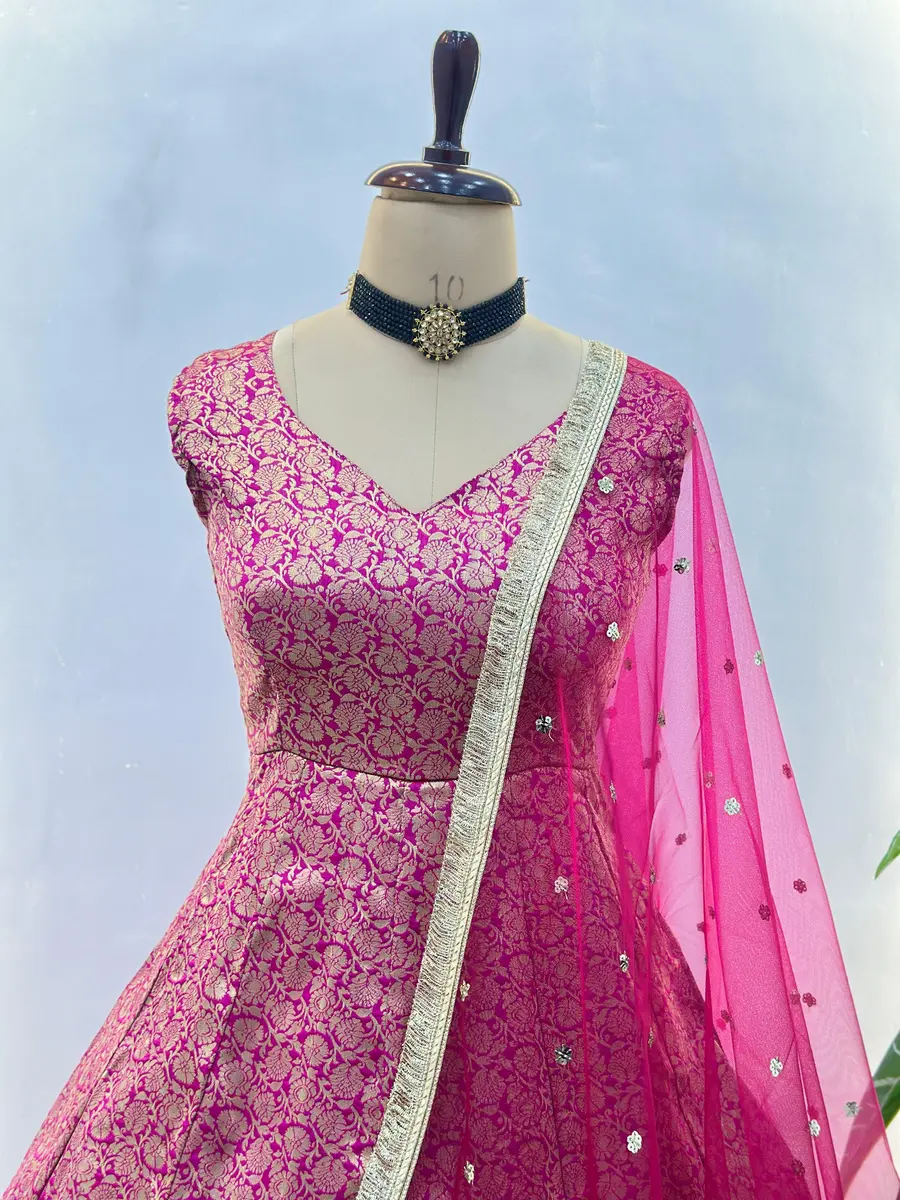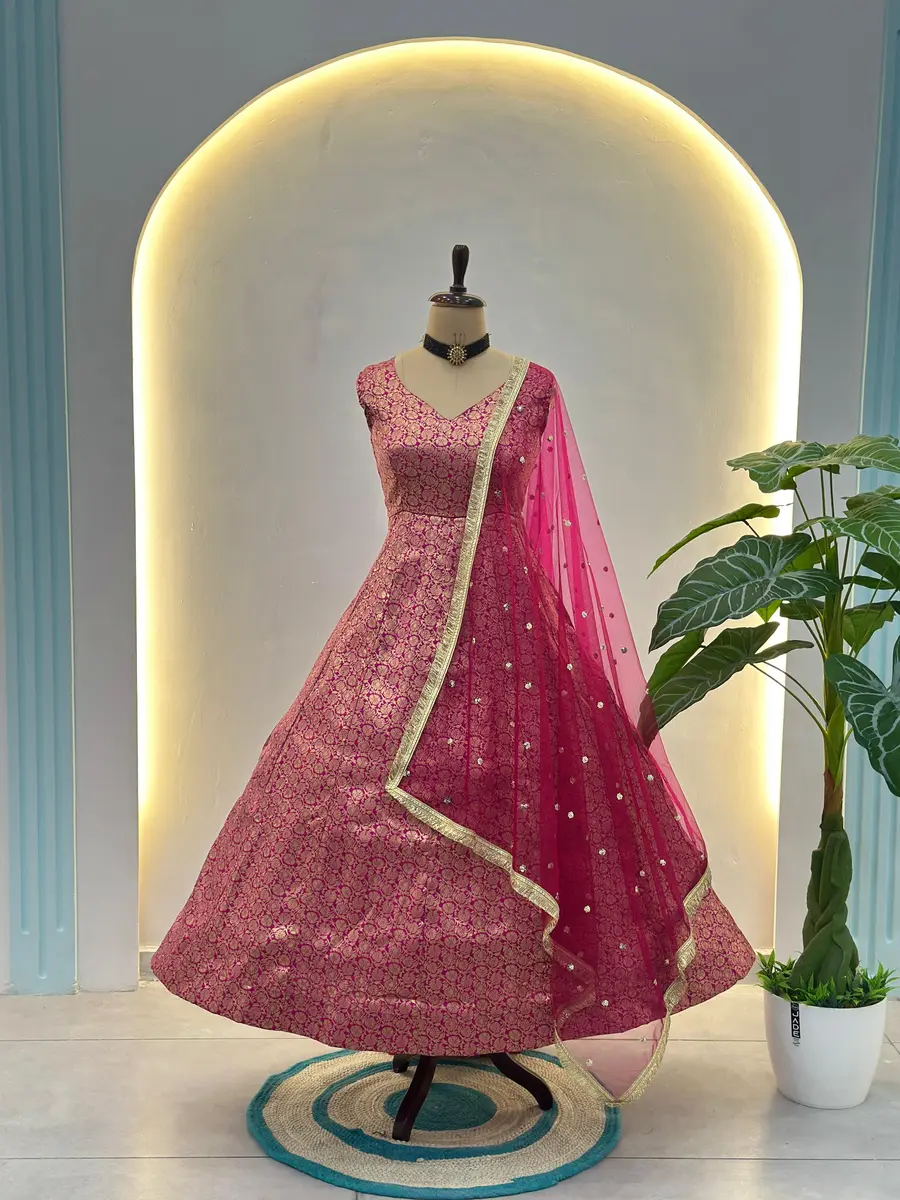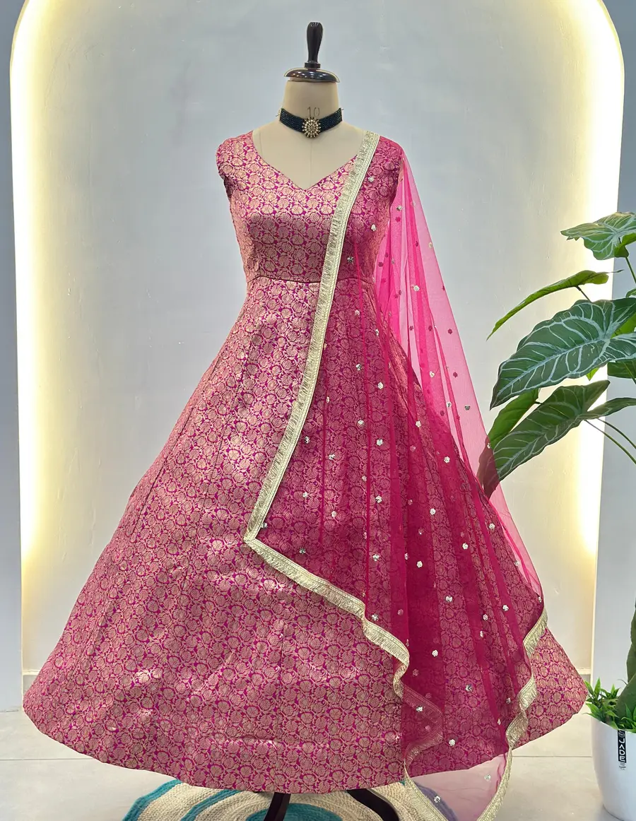 FANCY VISCOSE JACQUARD WORK GOWN BOTTOM WITH DUPATTA PINK