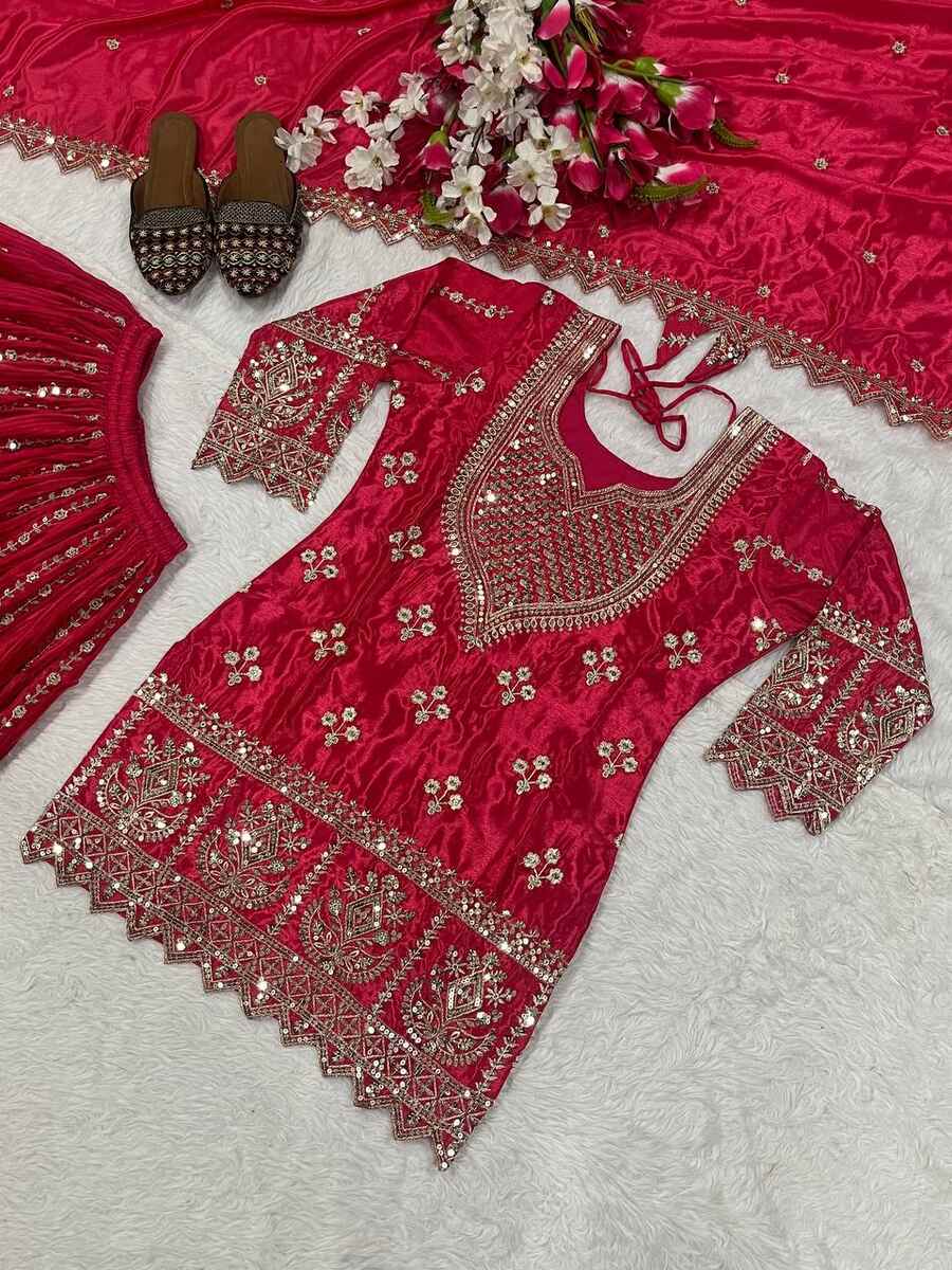FASHIONABLE CHINON SILK SEQUENCE EMBROIDERY WORK TOP PALAZZO WITH DUPATTA PINK