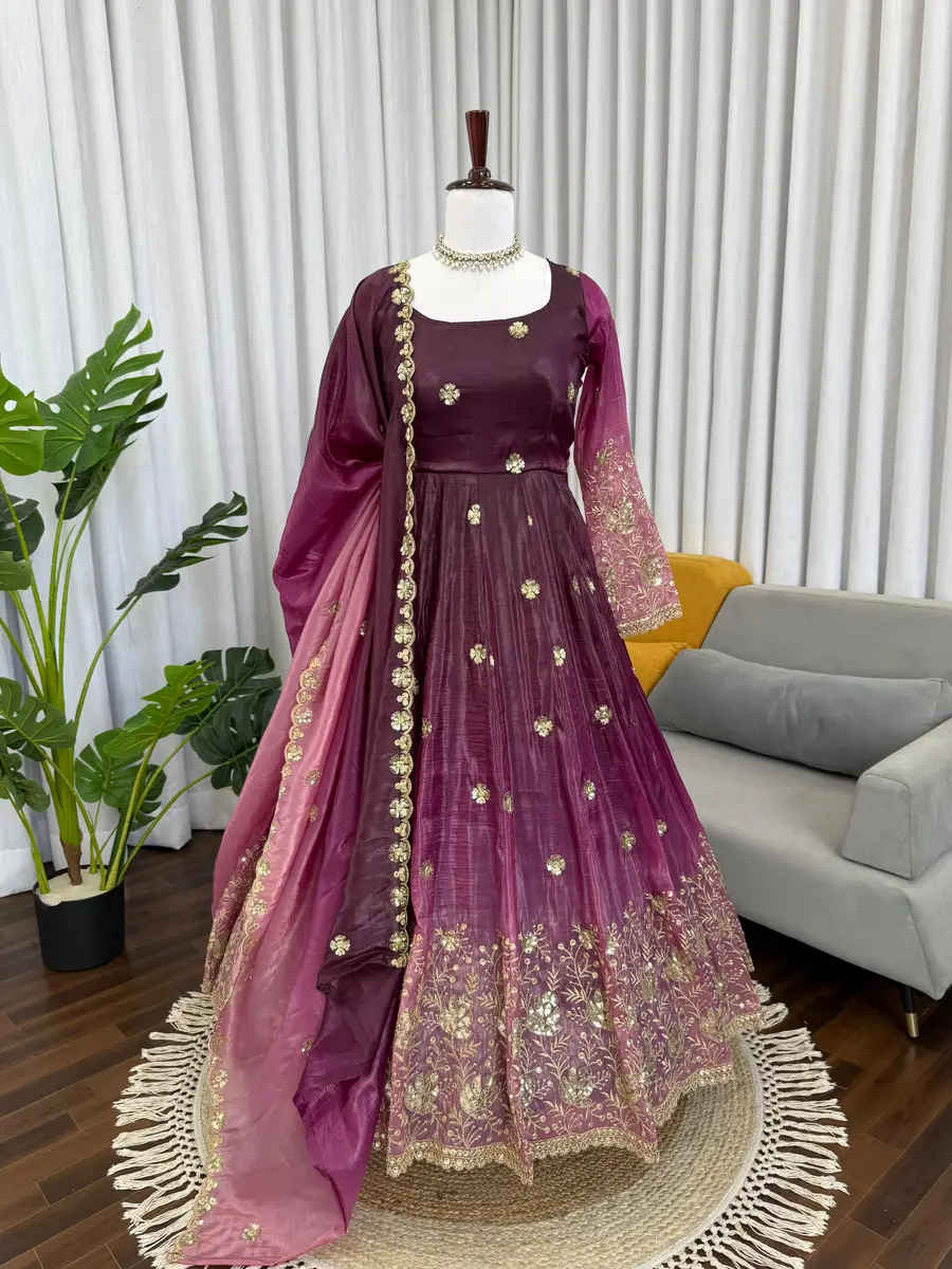 FASHIONABLE CHINON SILK THREAD WITH SEQUNCE WORK GOWN BOTTOM WITH DUPATTA PURPLE
