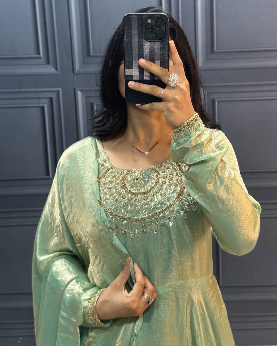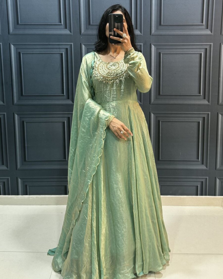 FASHIONABLE FENDY SILK HANDWORK ON NECK GOWN WITH DUPATTA