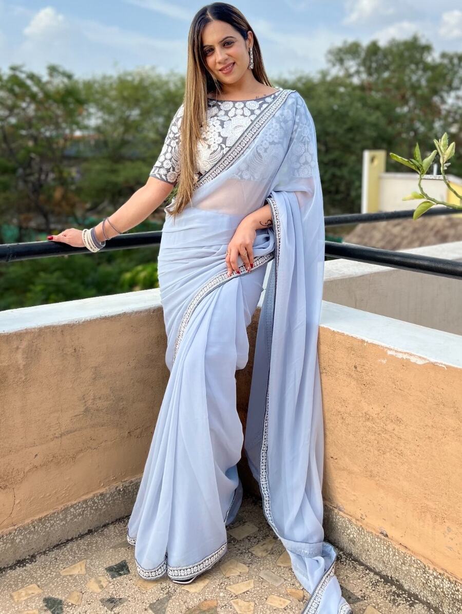 FASHIONABLE GEORGETTE EMBROIDERY WORK SAREE WITH UNSTITCHED BLOUSE BLUE